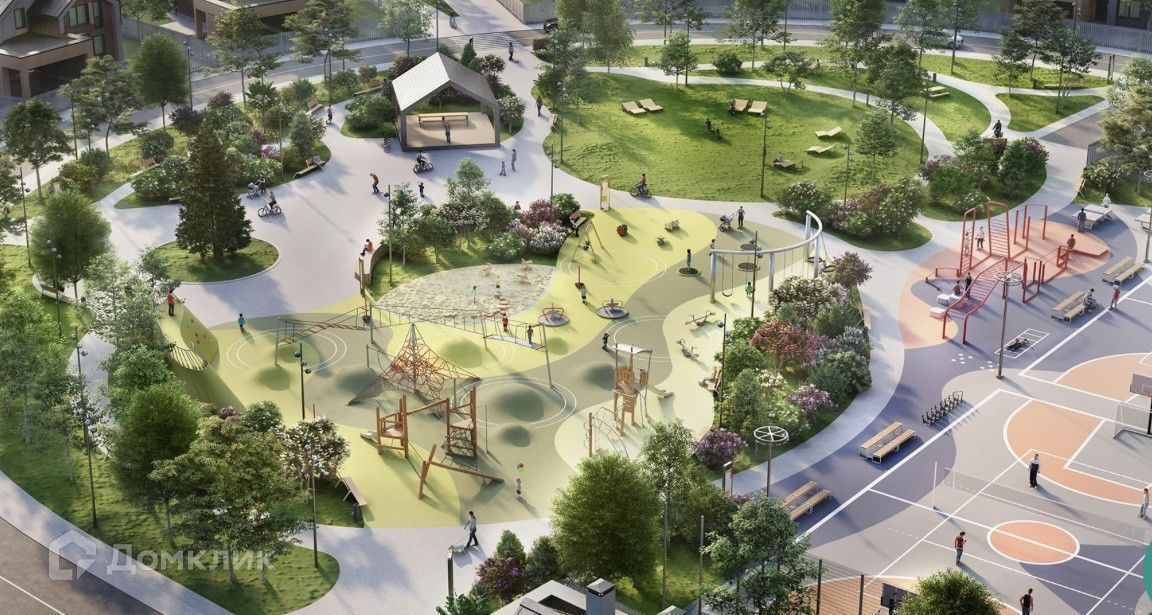 На территории Ландшафтный парк и детские площадки