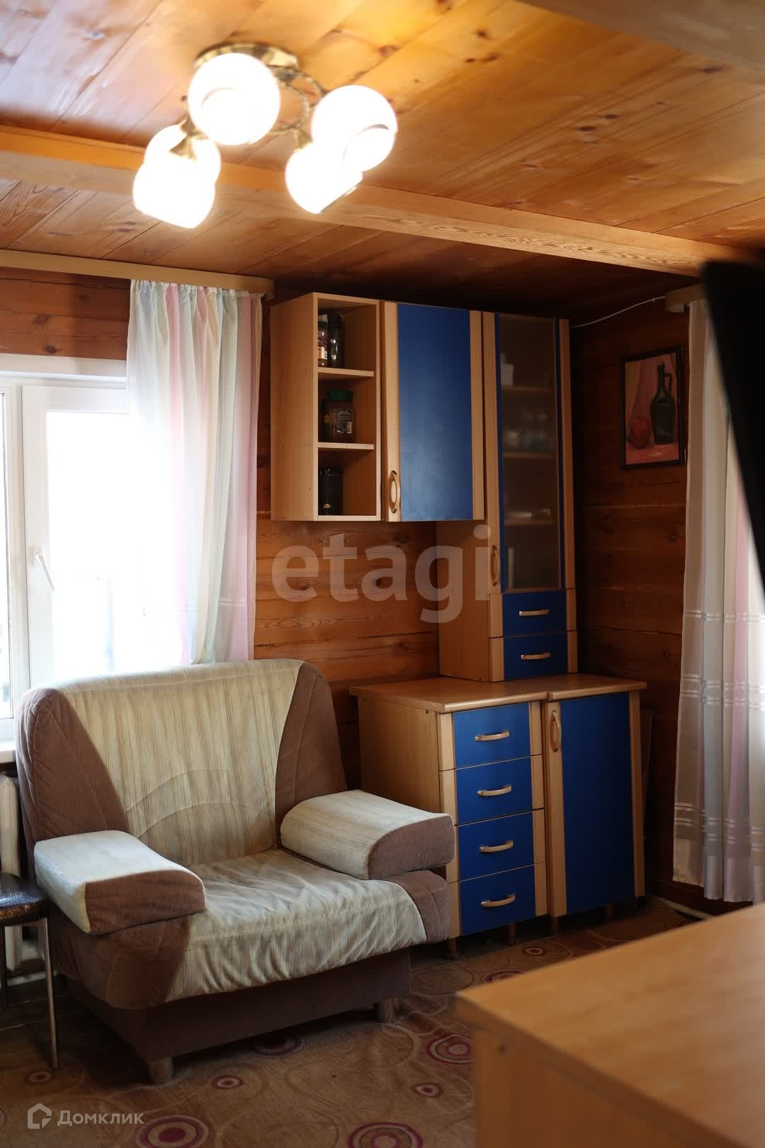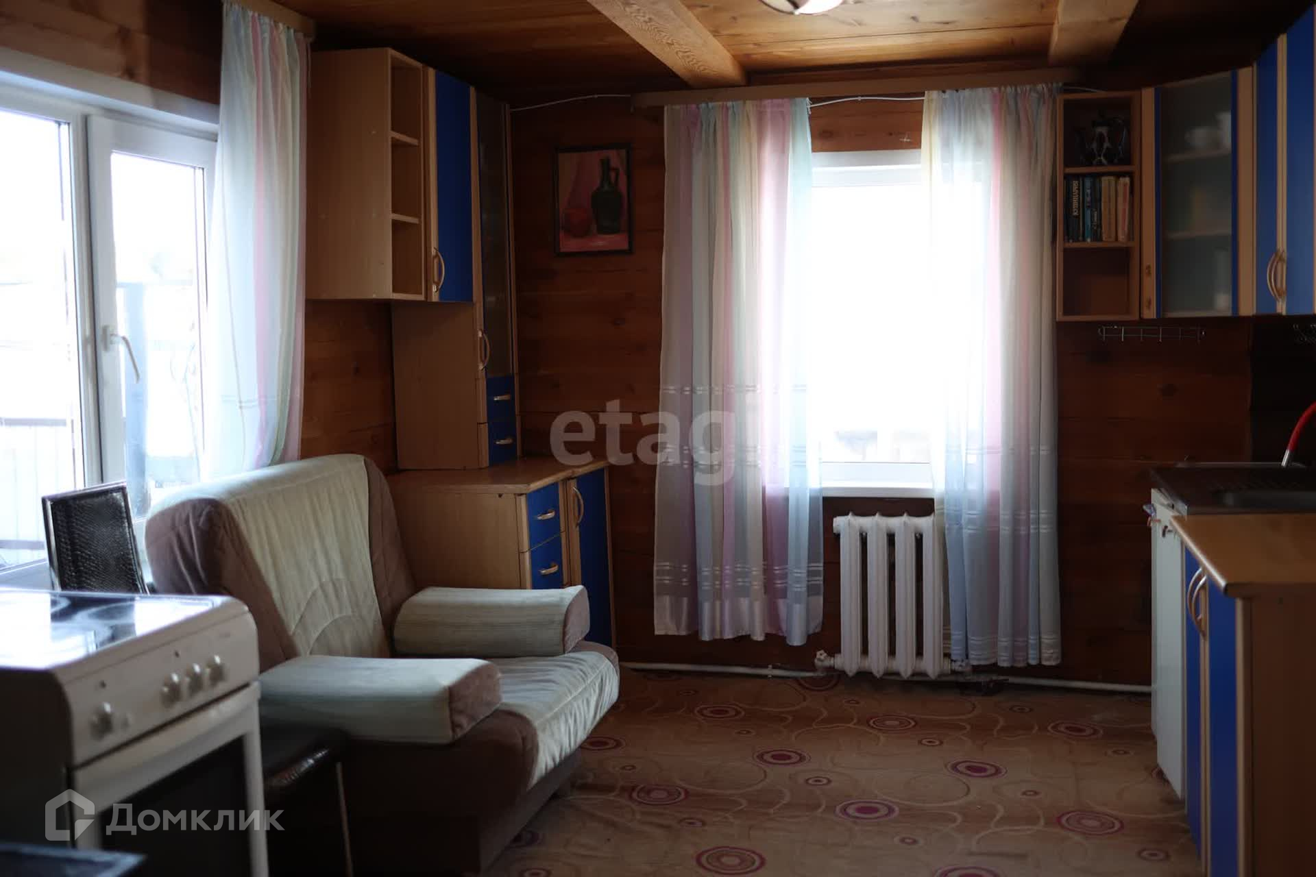 Построен в 2012 году из оцелиндрованного бревна,(кухня брус, веранда из сендвич-панелей, утеплитель-минвата), отопление электрический котел и печное, вода чистая из скважины, заведена в дом, канализация септик. Крыши из профлиста.