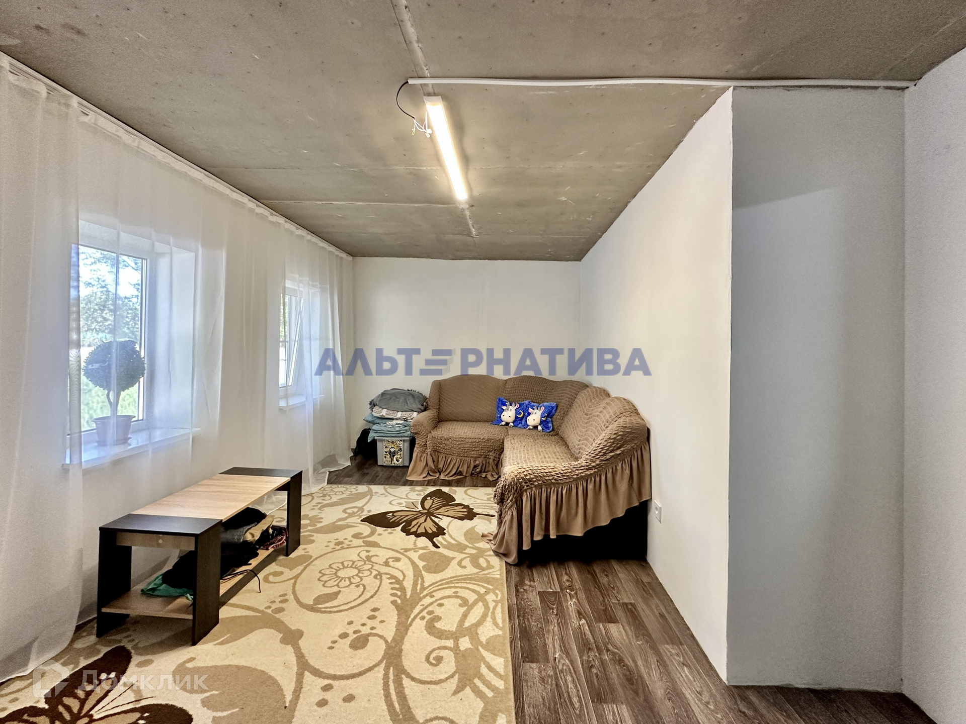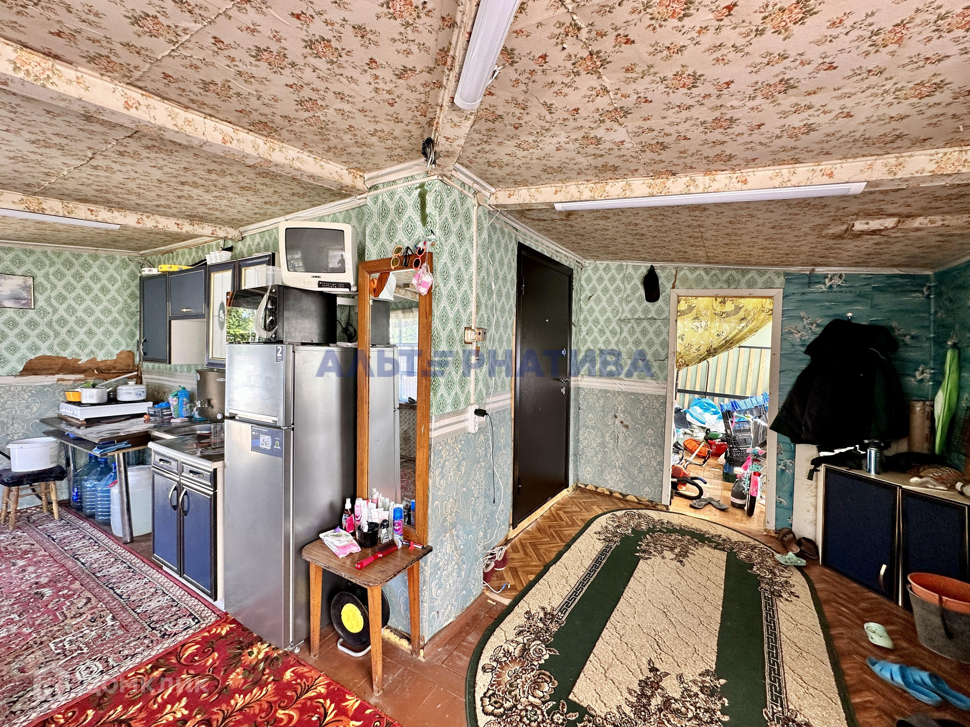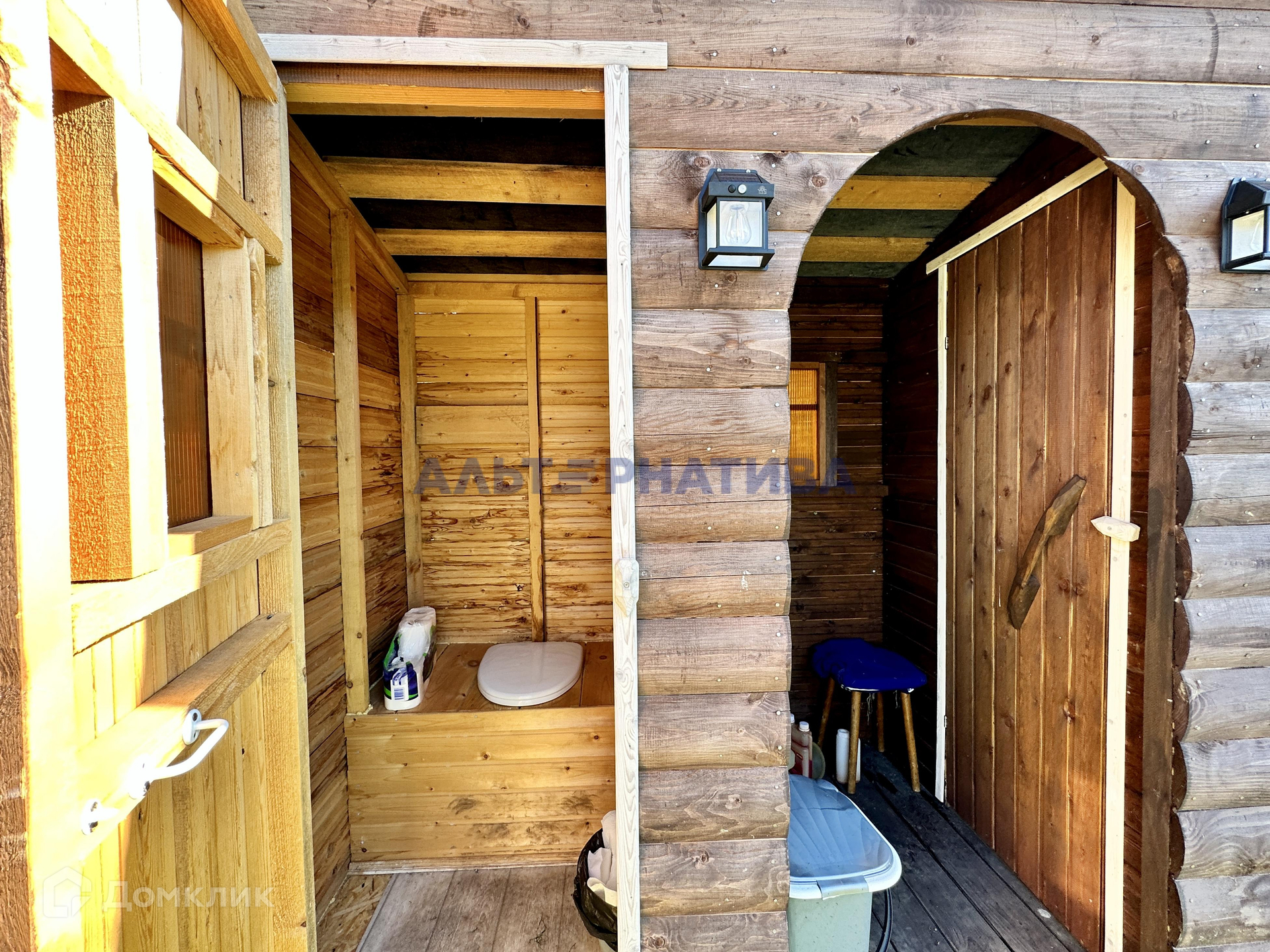 Дом площадью 64.9 кв.м. с двумя комнатами. Внутри обустроена гостиная и детская. Из коммуникаций: электричество (сельский тариф!) и проведен интернет (Фотон). Туалет уличный.