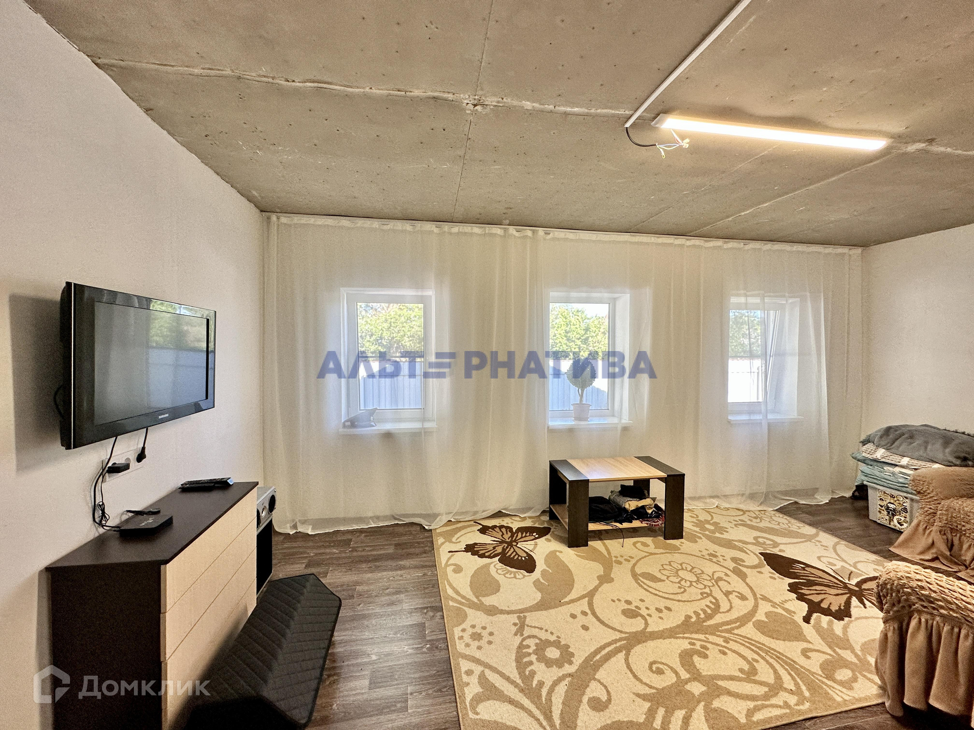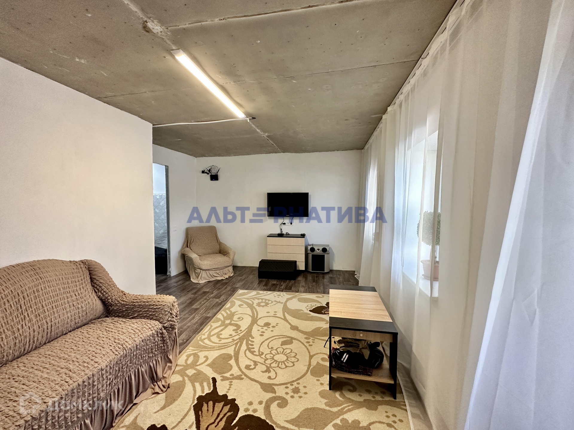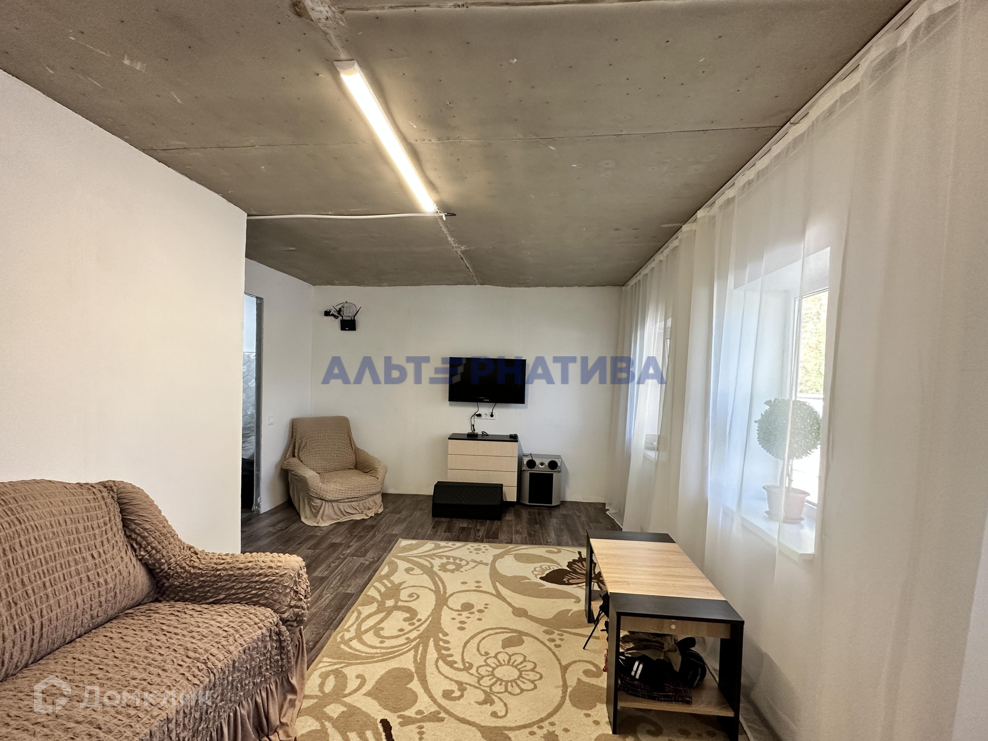 Дом площадью 64.9 кв.м. с двумя комнатами. Внутри обустроена гостиная и детская. Из коммуникаций: электричество (сельский тариф!) и проведен интернет (Фотон). Туалет уличный.
