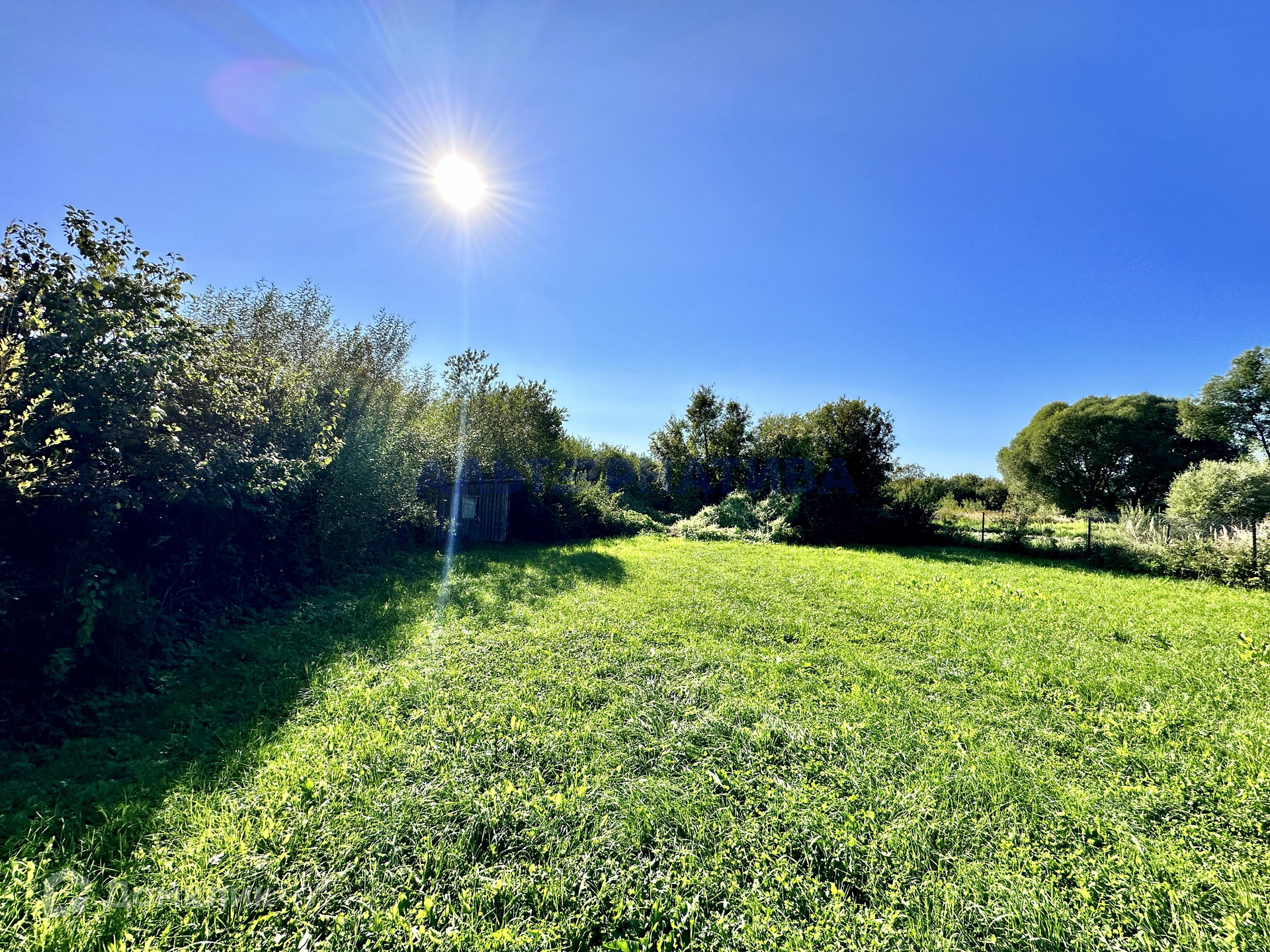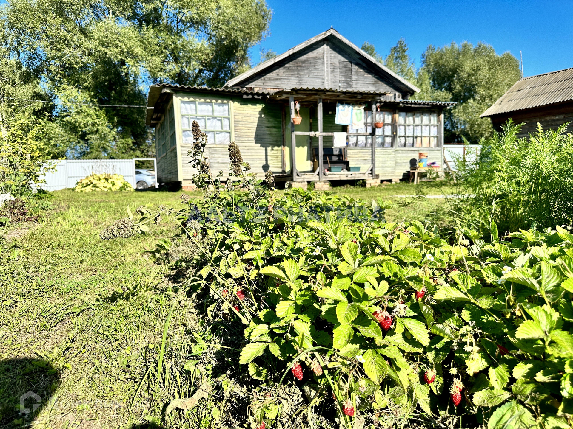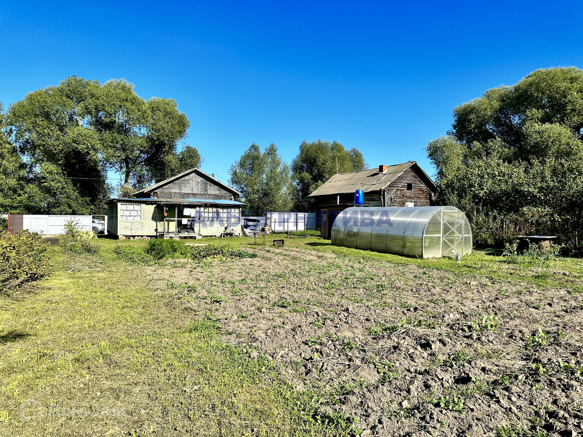 Участок поделен на две части: на одной - дом, теплица, подготовлены сваи для установления бытовки, грядки с земляникой и клубникой, на другой - луг для прогулки или отдыха. Соседи только с двух сторон. Участок ровный и сухой, есть дренажные канавы для отвода воды.