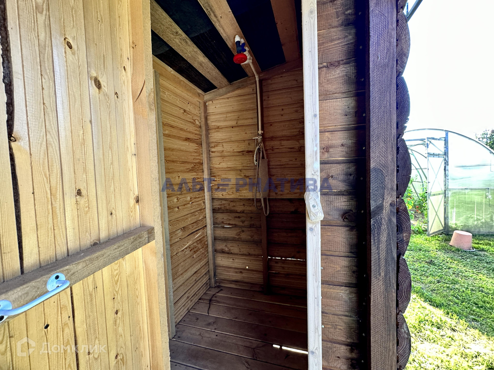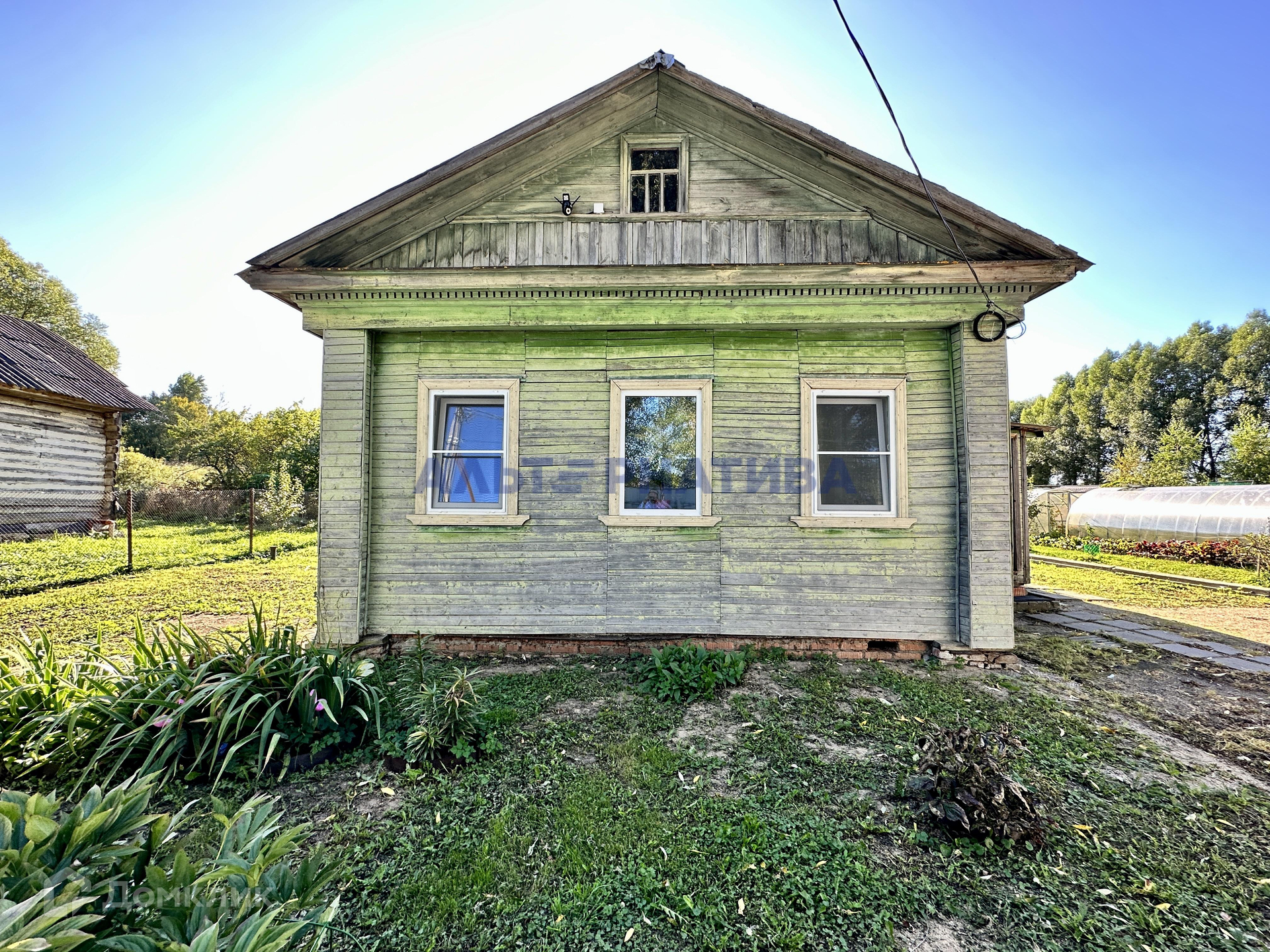 Деревянный дом располагается на участке площадью 15 соток.