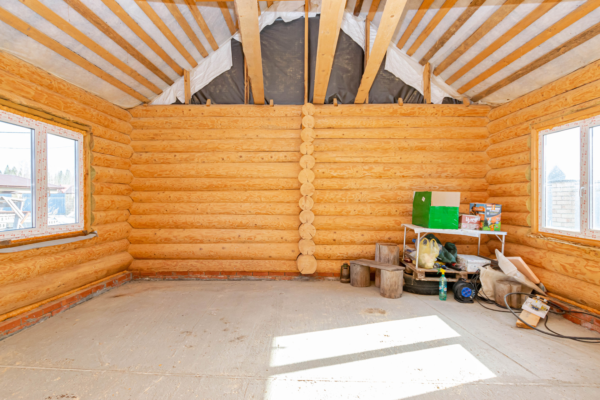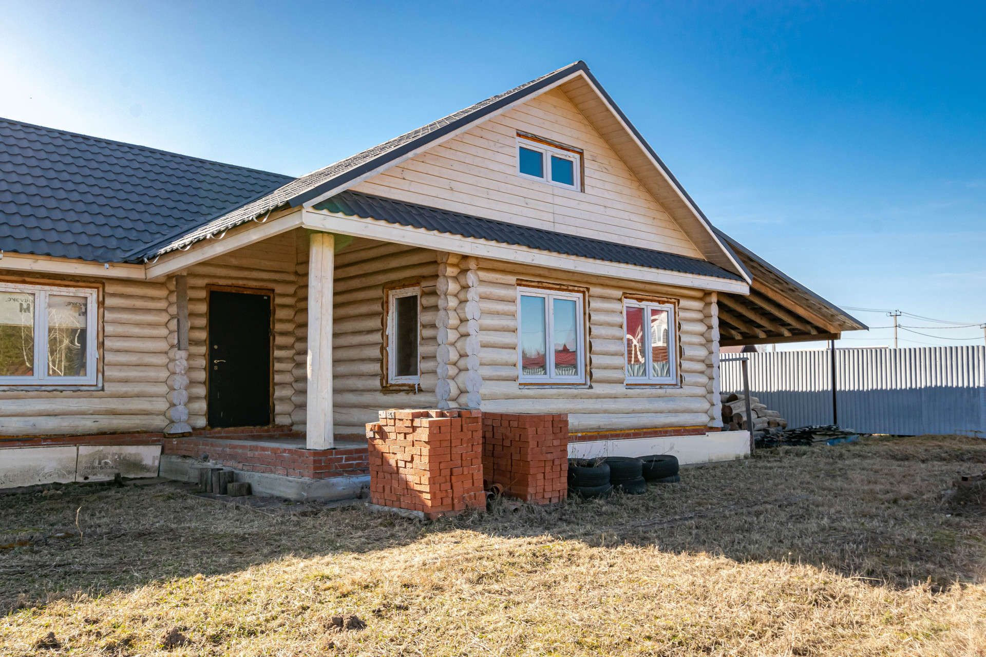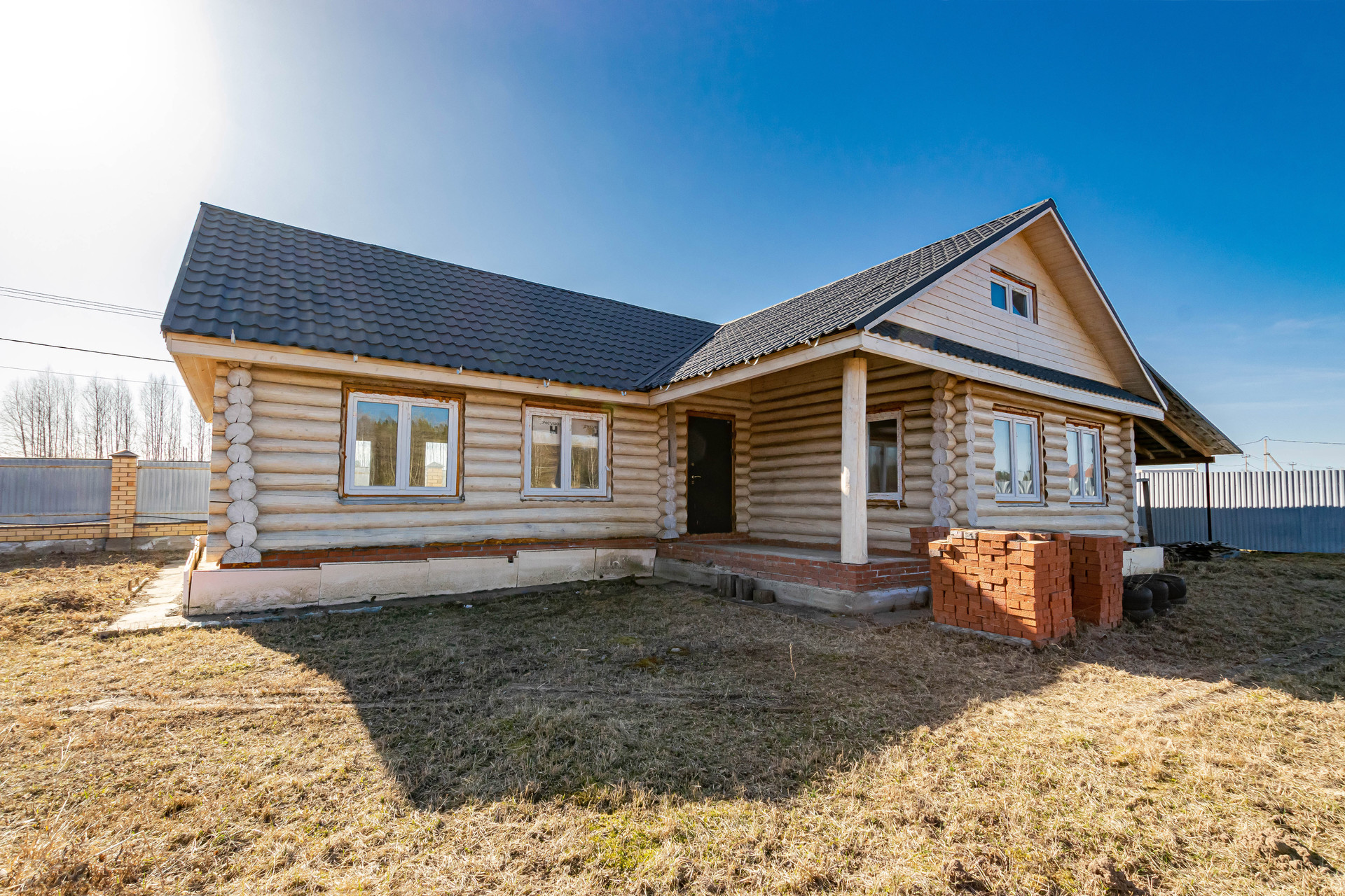 Дом выполнен качественно из рубленого бревна (сосна) диаметром 26-28 см, заготовленного в зимнее время года. Два нижних венца диаметром 27 см срублены из лиственницы. Построен в 2017 году. Внутренние помещения возможно распланировать на ваше усмотрение, в доме несколько комнат, кухня, баня и предусмотрен мансардный этаж