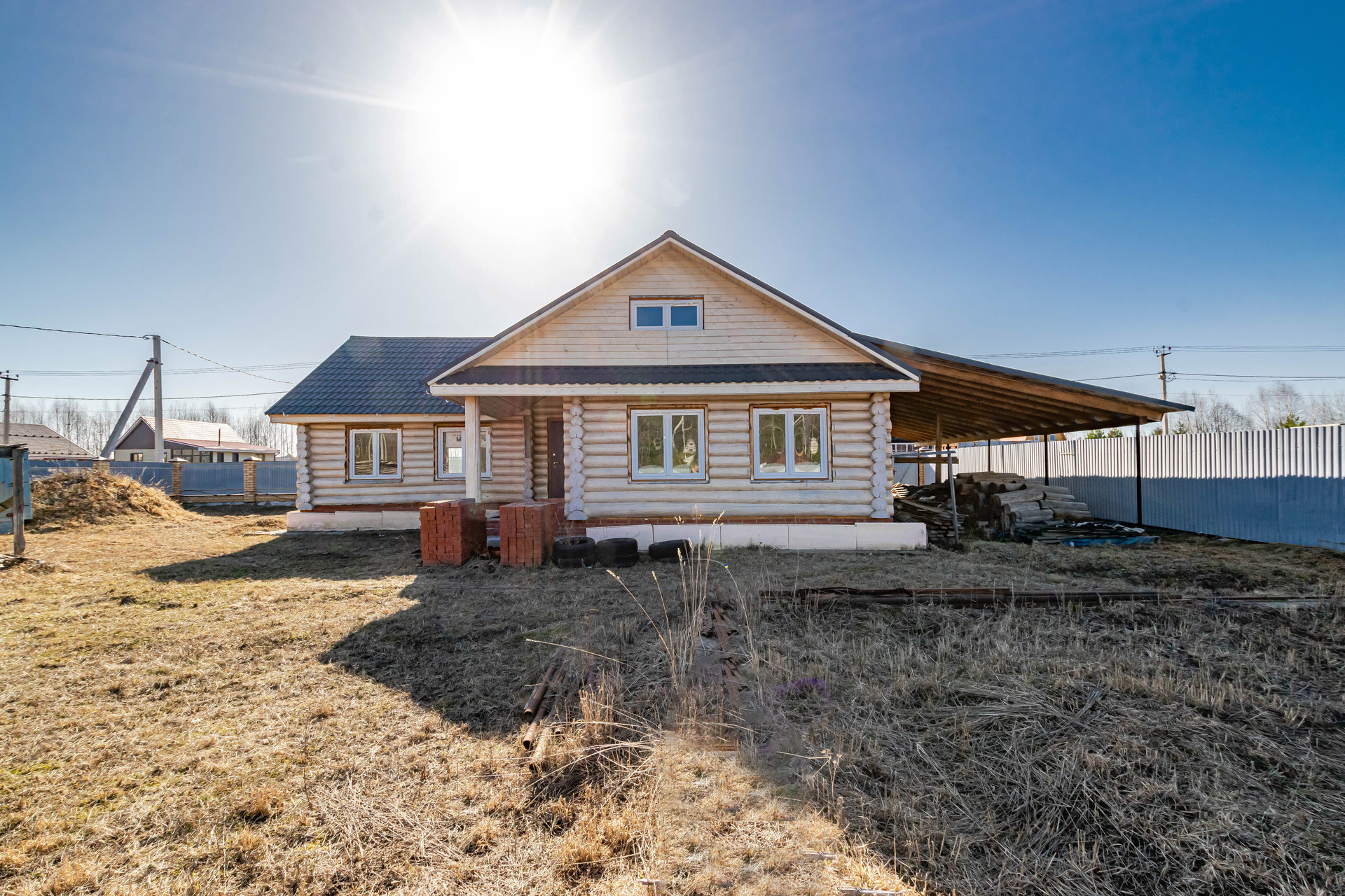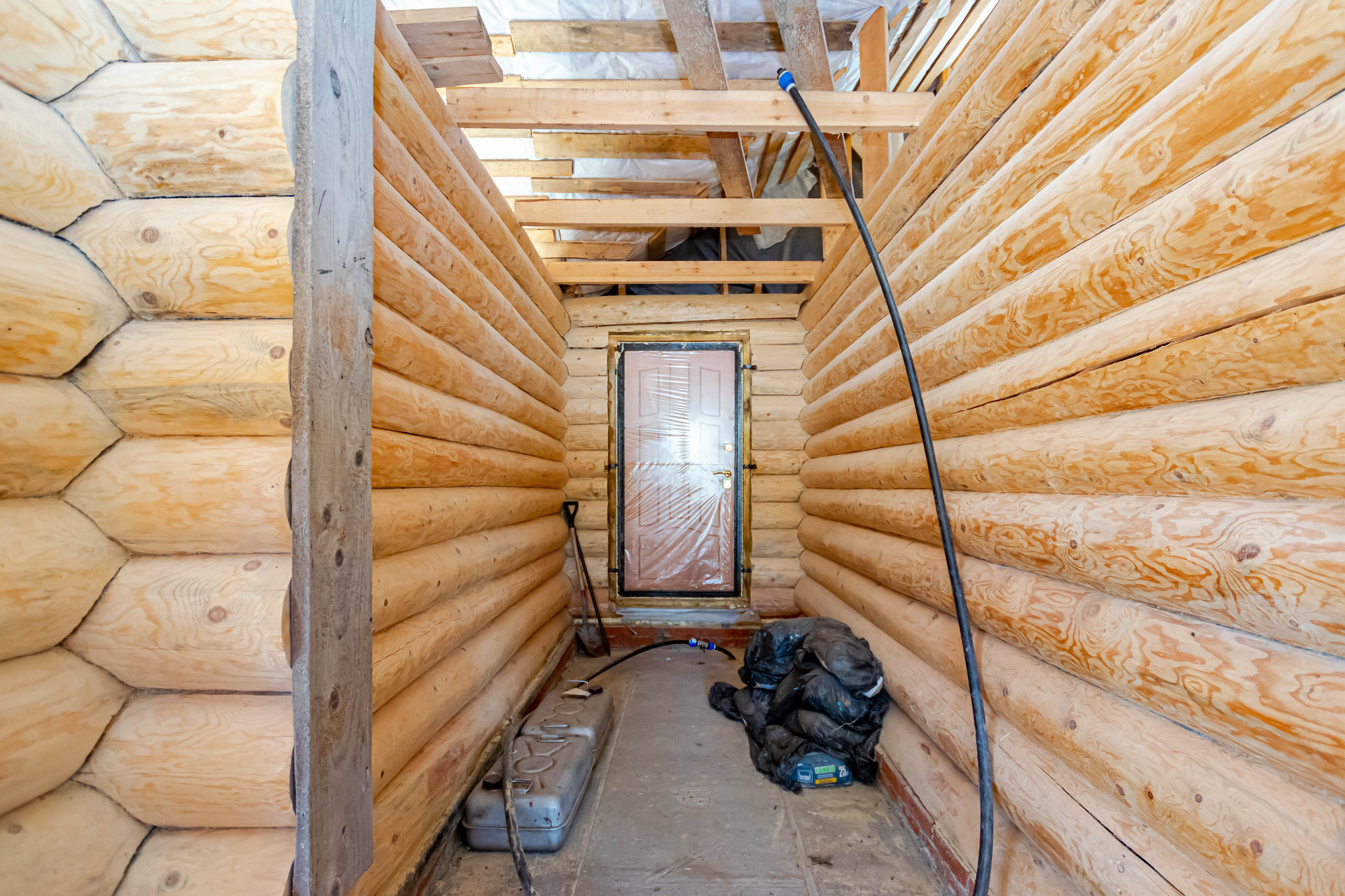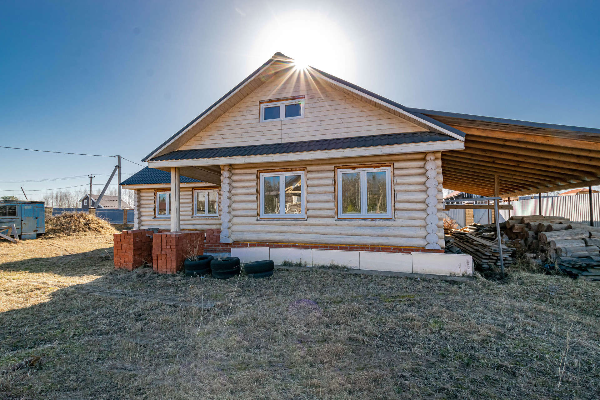 Дом выполнен качественно из рубленого бревна (сосна) диаметром 26-28 см, заготовленного в зимнее время года. Два нижних венца диаметром 27 см срублены из лиственницы. Построен в 2017 году. Внутренние помещения возможно распланировать на ваше усмотрение, в доме несколько комнат, кухня, баня и предусмотрен мансардный этаж