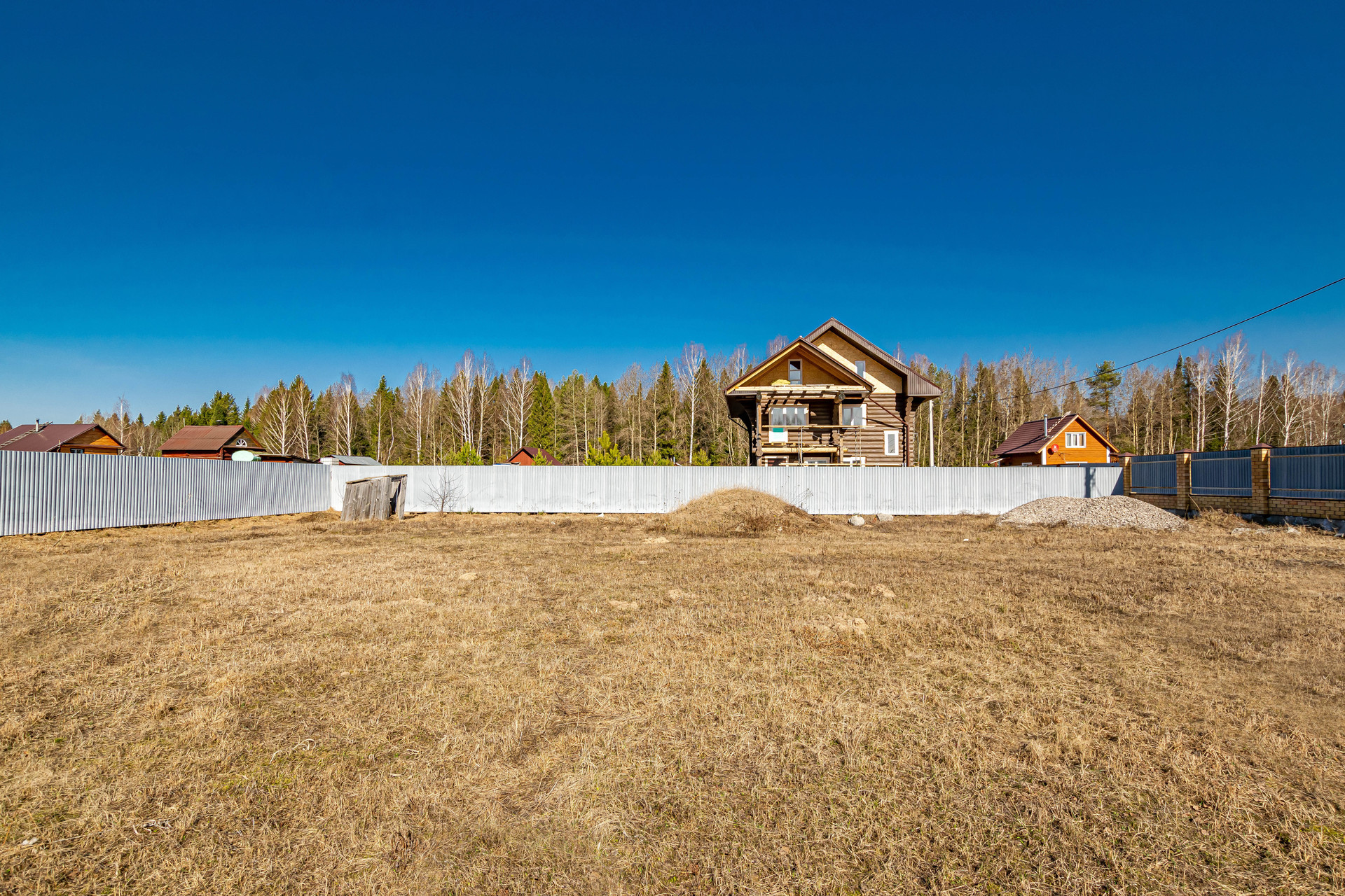 Ровный, просторный земельный участок по периметру огорожен забором