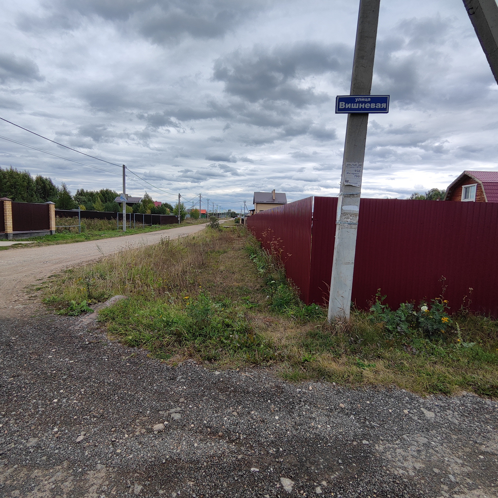 Наш участок правильной прямоугольной формы, который по периметру огорожен высоким металлическим забором. Газ на границе участка.