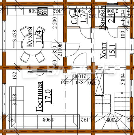 Эргономично продуманная планировка дома включает в себя: 2 спальни, просторный санузел, гостиную 17 кв.м., кухня 11.4 кв.м., гардеробную и террасу 15 кв.м.