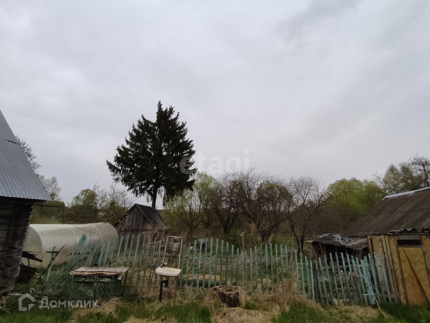 На участке есть два сарая, есть уличный душ, подключенный к скважине, есть дрова для отопления дома. Рядом протекает река.