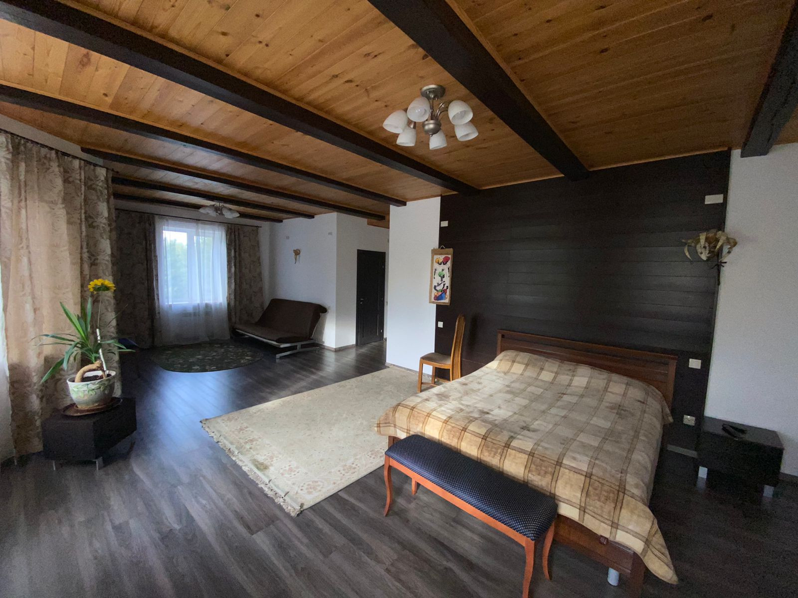 Второй этаж: спальня 42 кв.м. со своей гардеробной в 12 кв.м., еще две спальни, игровая комната 30 кв.м., кастелянская, два санузла.