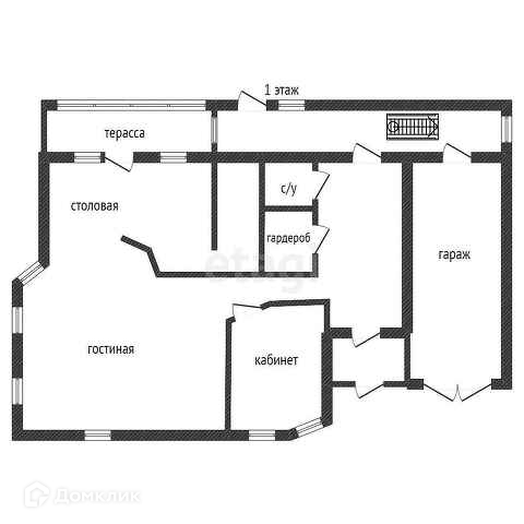 Первый этаж включает кухню-гостиную 60 кв.м. с действующим камином с выходом на просторную террасу, гостевая комната-кабинет, гардеробная, кладовая, санузел. По всему этажу система теплого пола от отопления. Пол выложен керамогранитом испанского и итальянского производства. Имеется выход в гараж с автоматическими воротами.