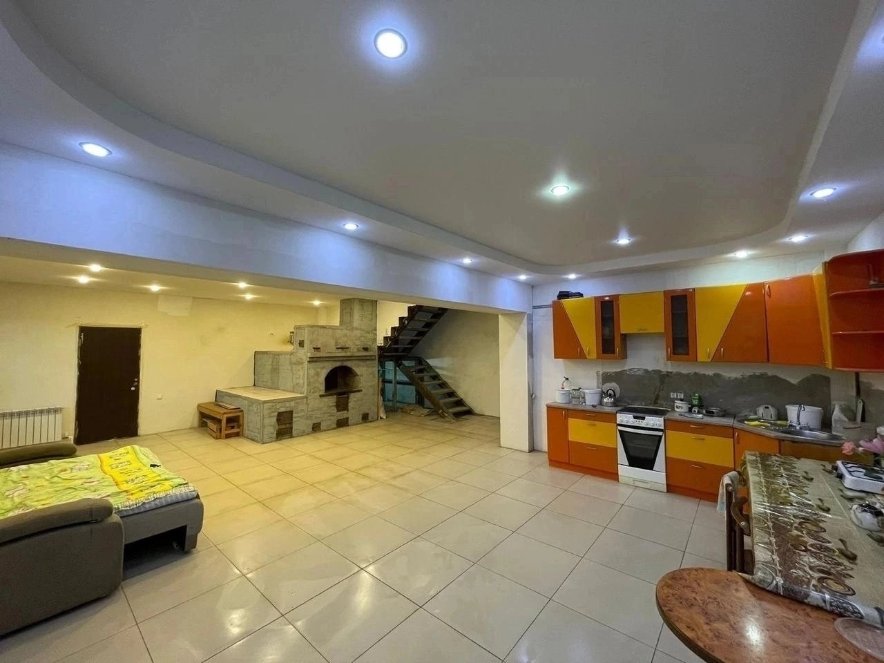 1 этаж. Прихожая, большая комната с русской печью и кухня. Две гостевые комнаты, санузел. Место под лифт. Большой гараж. Котельная.