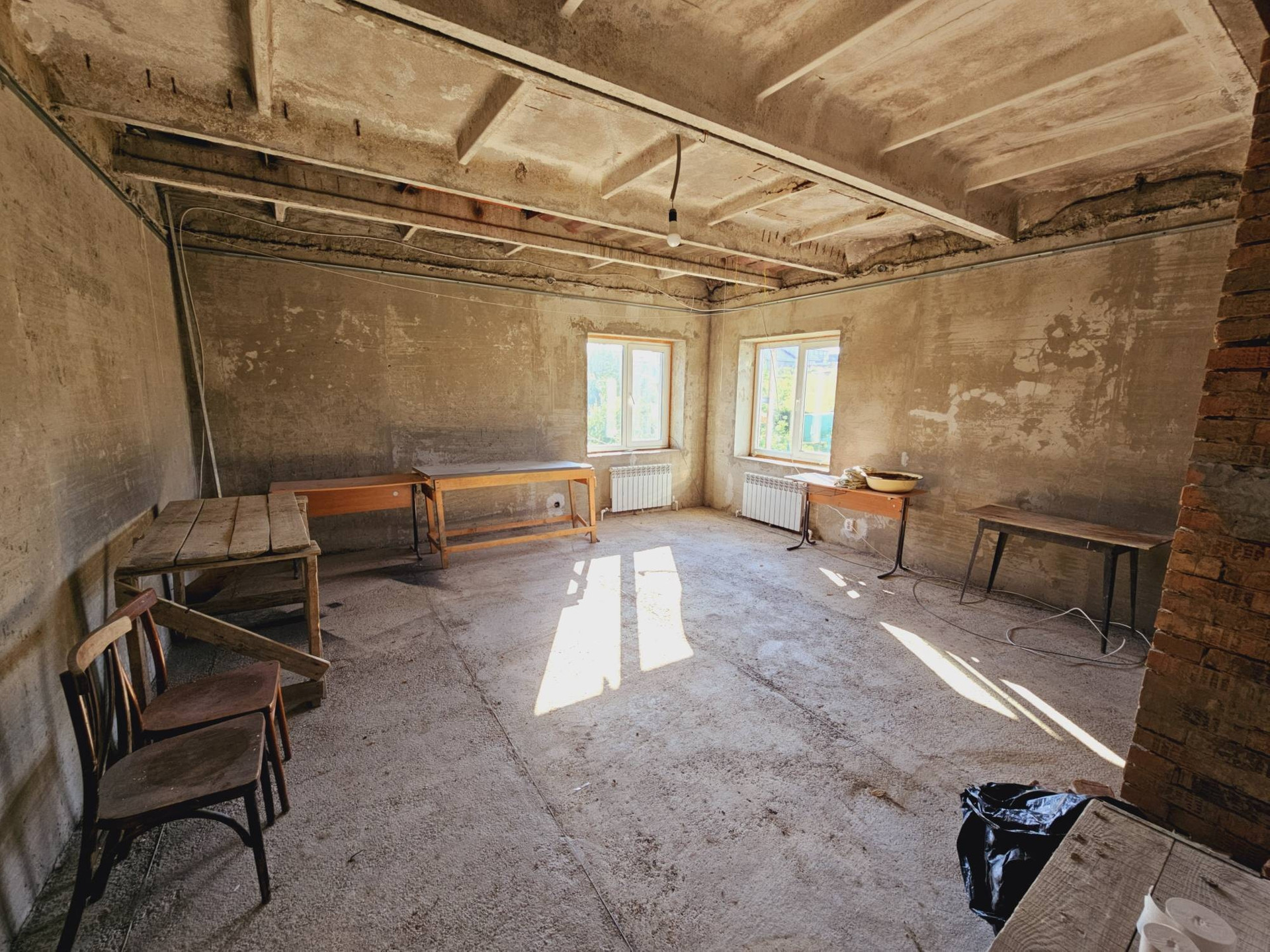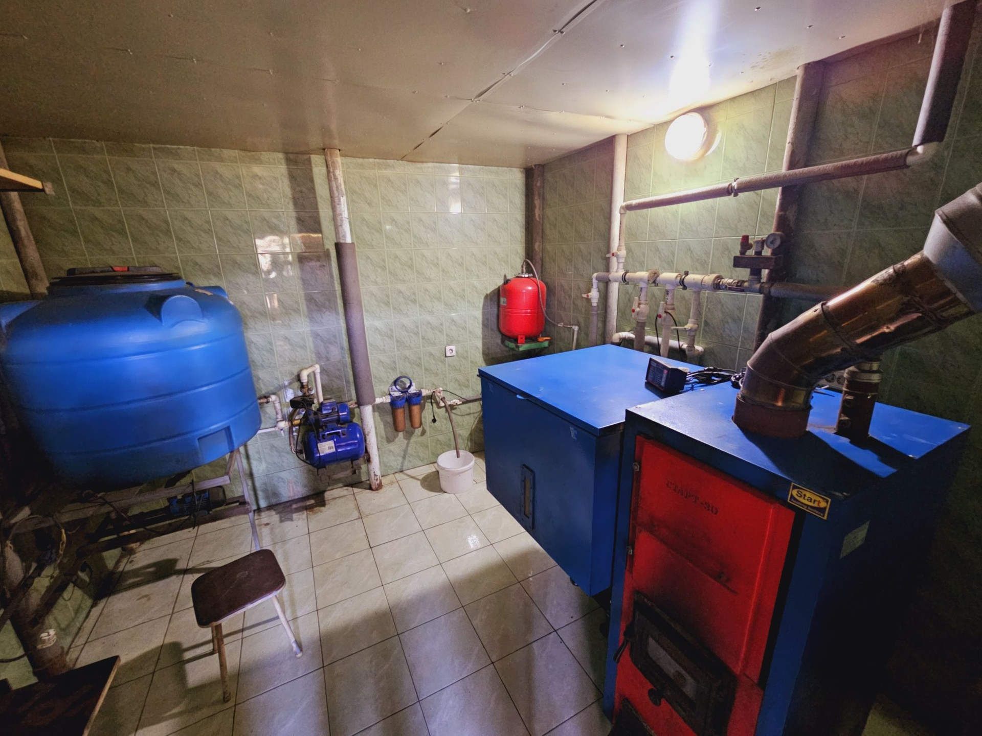 5. Отопительная система: в доме установлен котёл, который можно отапливать пеллетами и углём.