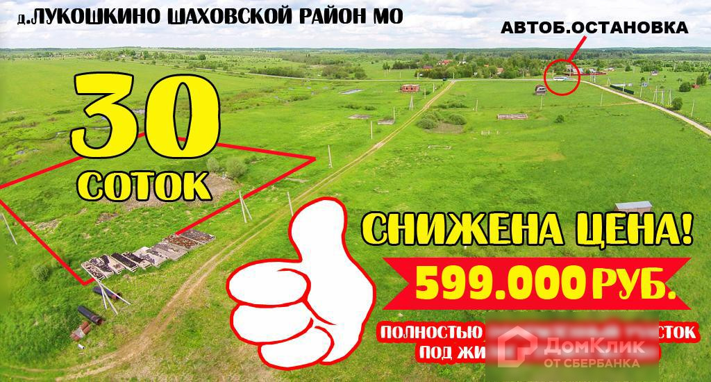 СНИЖЕНА СТОИМОСТЬ на оформленный участок 30 соток в деревне Лукошкино Шаховского района Московской области. Правильная квадратная форма 55м.х55м. Участок оформлен в собственность физического лица. Межевание проведено, право зарегистрировано. Разрешенное использование: для индивидуального жилищного строительства. Возможно строительство жилого дома и прописка в нём. Расстояние от мкад около 155 км. по Новорижскому шоссе. Отличное асфальтированное шоссе до деревни + 300 м. до участка отсыпная песчано-гравийная. Электричество подключено - мощность 15 кВт. Рядом лесной массив. По задней границе протекает небольшая речка. Тихая тупиковая деревня, отличное место для строительства загородного дома для отдыха или проживания. Стоимость участка 499 т.р. В стоимость входят плиты перекрытий и трубы, подготовленные для строительства. Кроме этого, на участке котлован под фундамент для ранее запланированного строительства. Полное сопровождение сделки купли-продажи в подарок от агентства. Возможен торг!