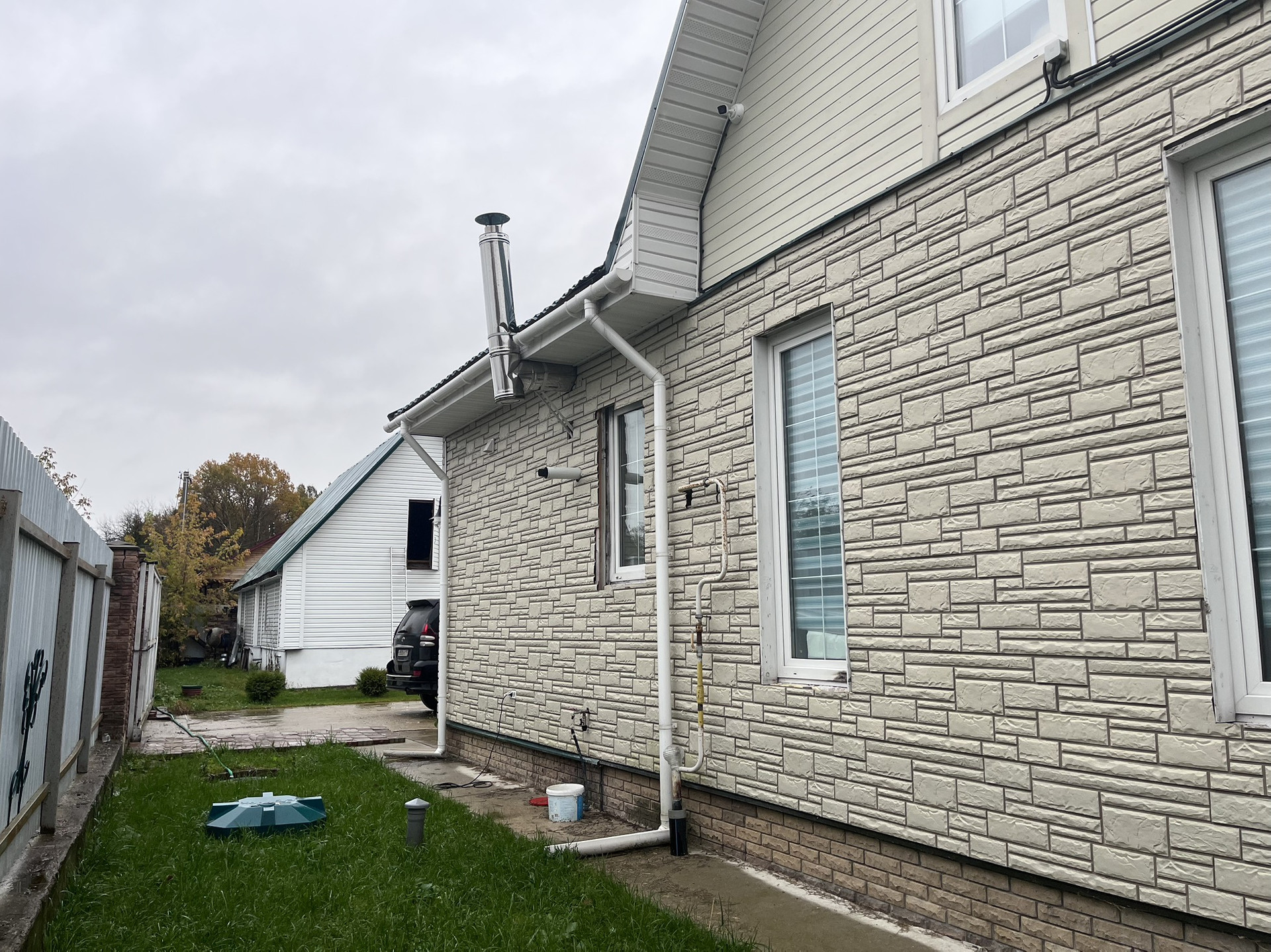 Что касается коммуникаций, то на участке имеется магистральный газ, заведенный в дом, газовый котел Baxi с регулировкой температуры отопления и горячей воды, скважина, электрический столб, септик и система очистки воды с различными настройками жесткости и мягкости воды.