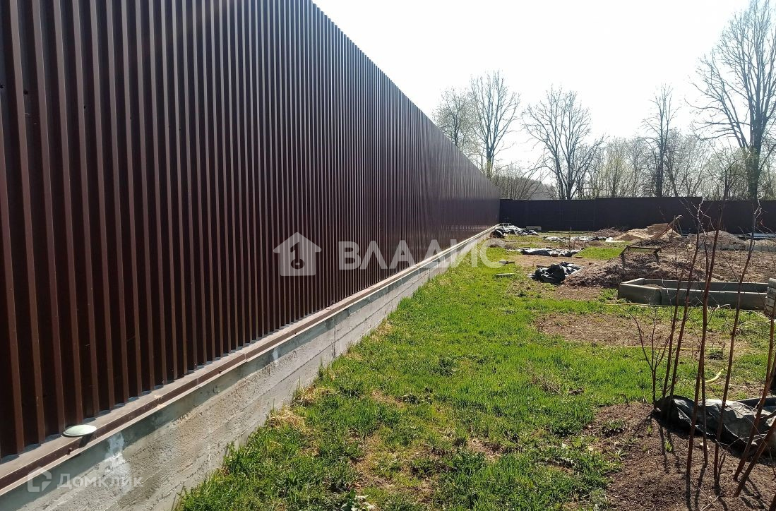 Участок огражден металлическим забором с монолитным фундаментом