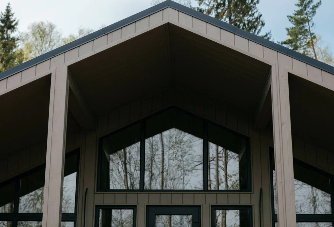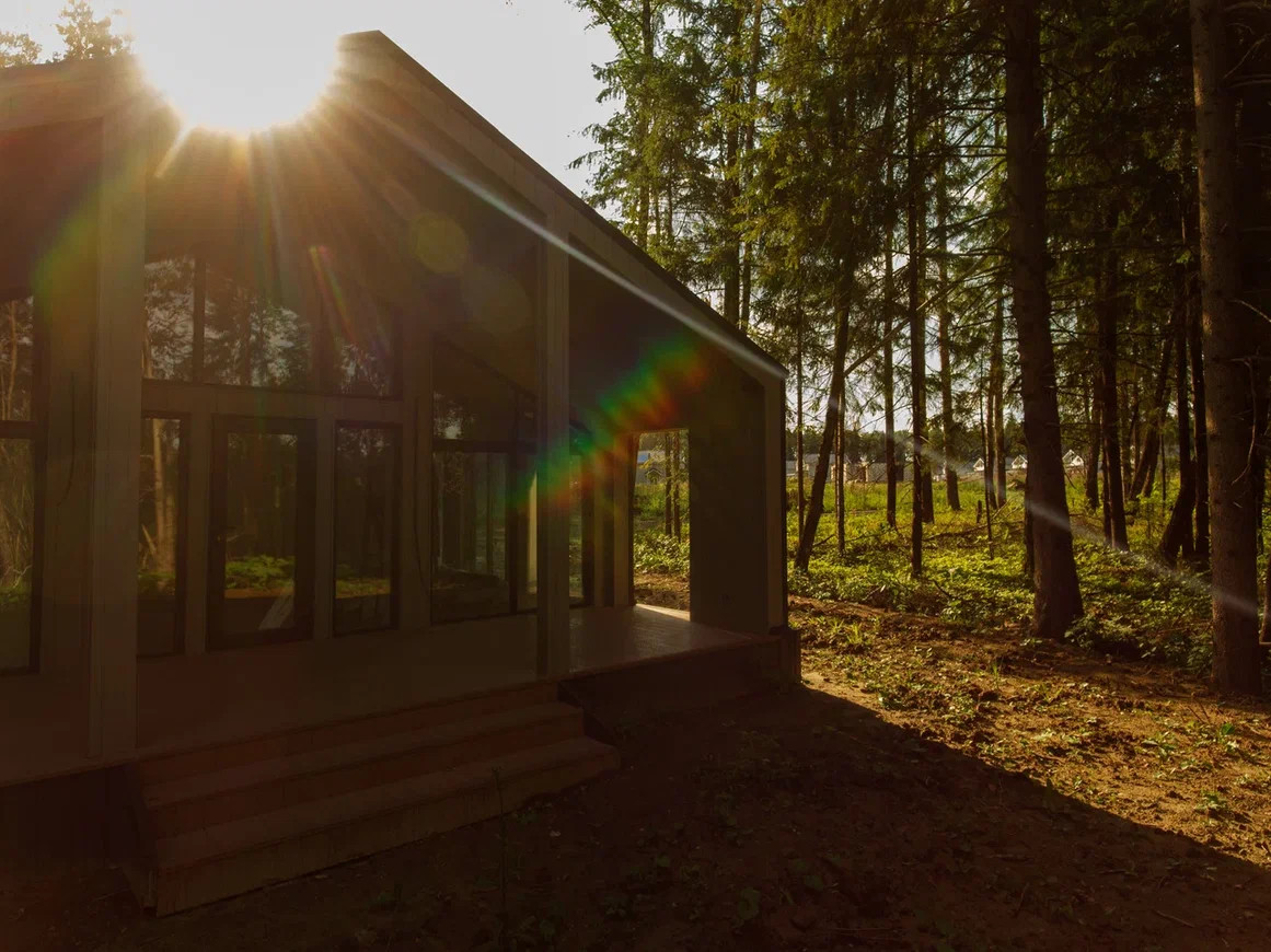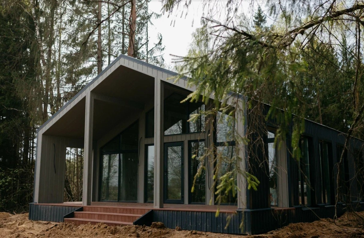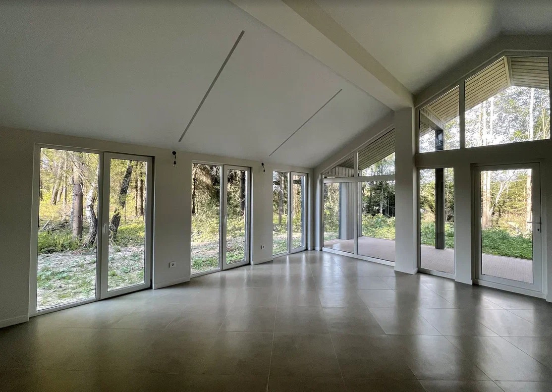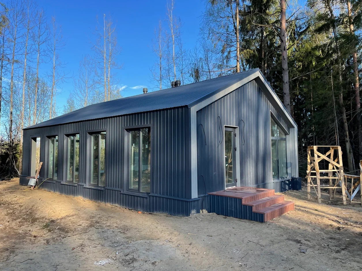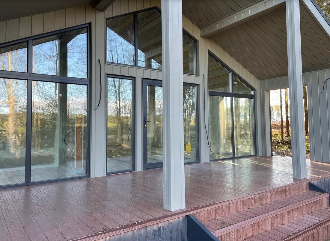 Современный дом с панорамными окнами и чистовой отделкой, 92 м2 с большой верандой, на участке 8 соток размером 26м х 29м, с возможностью увеличить до 16 соток.