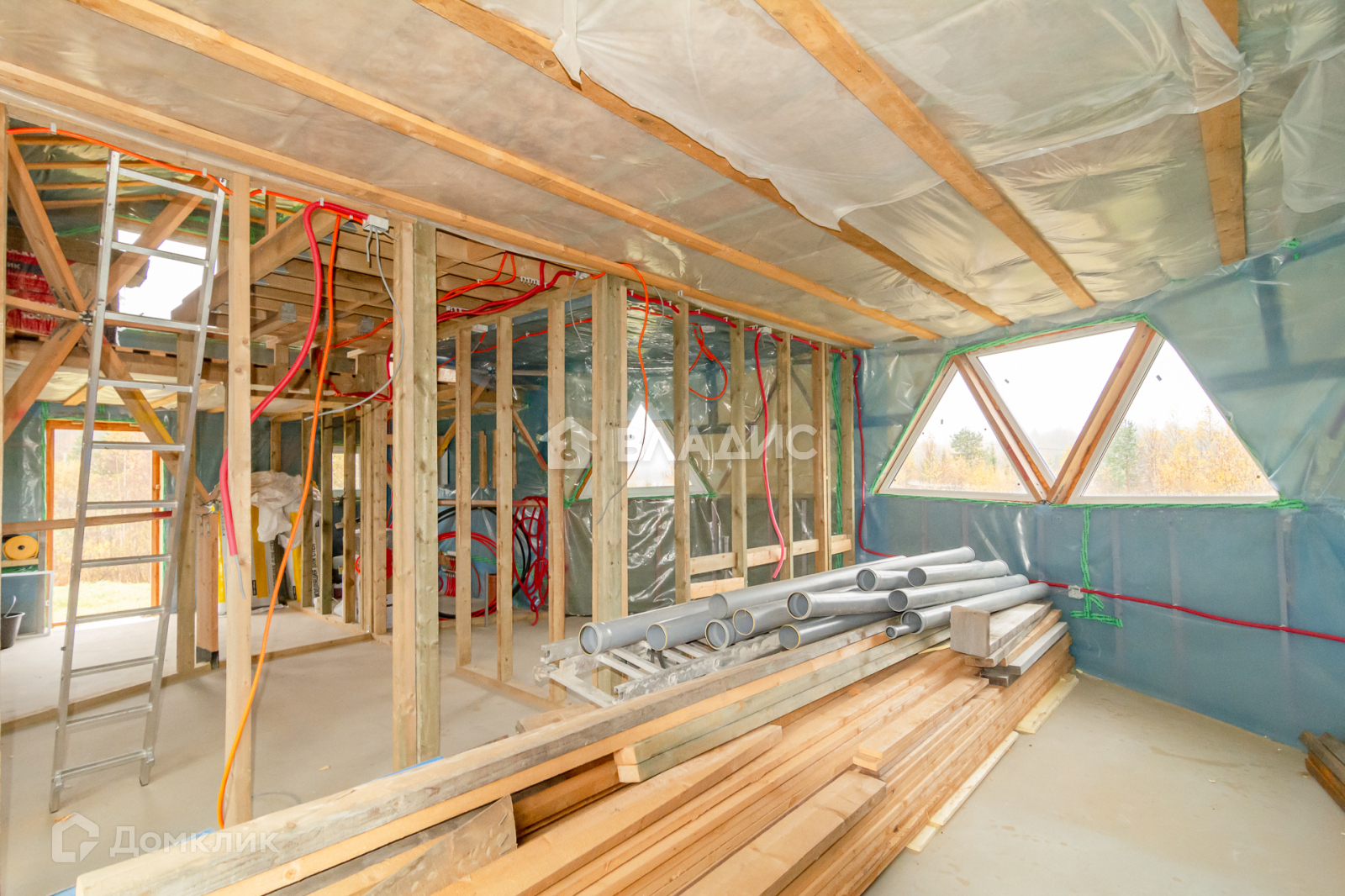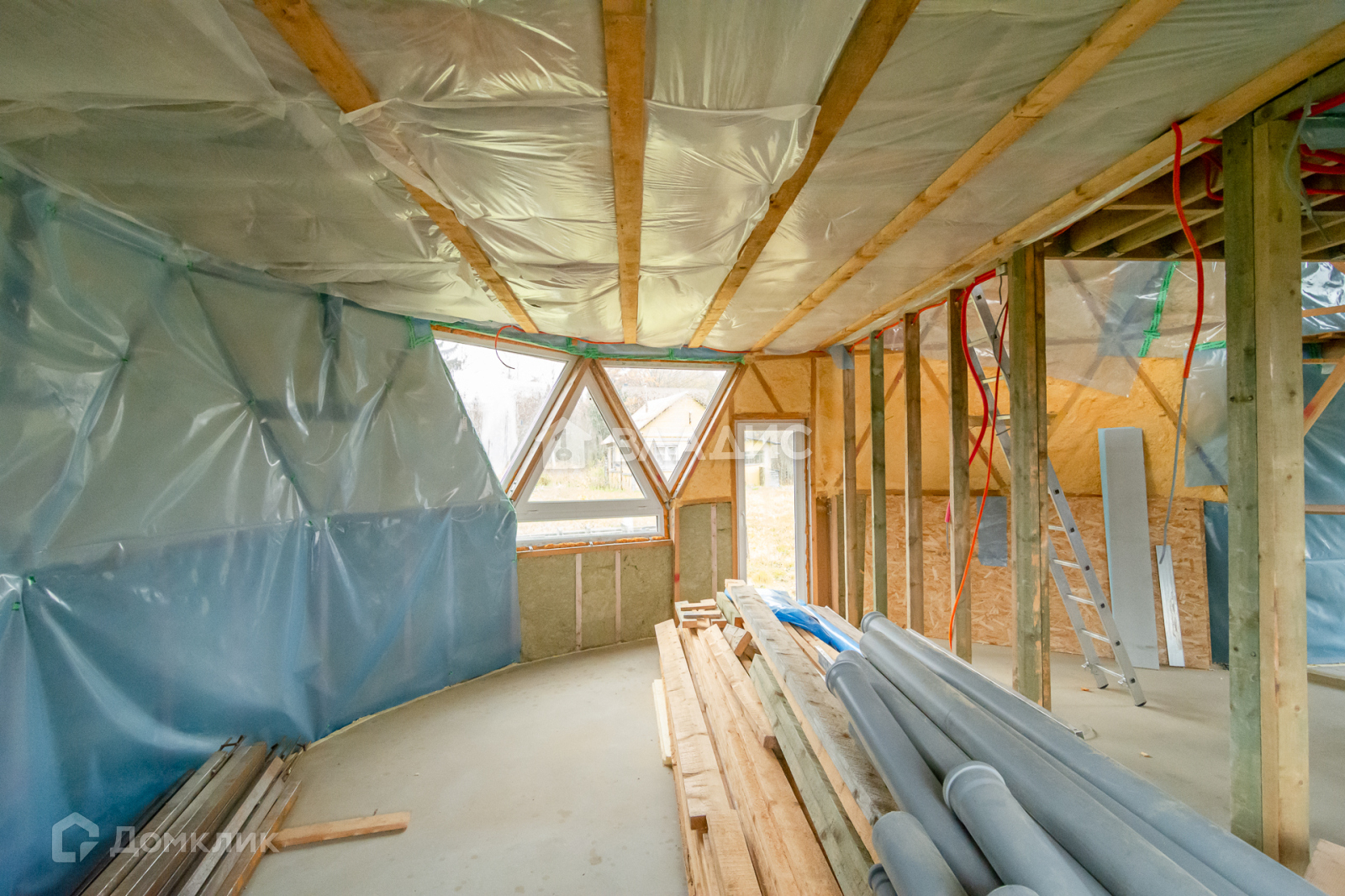 Ленточный фундамент 500*400 с утеплённой плитой внутри (полы выровнены под чистовую отделку). Все трубы проложены: тёплый пол, канализация, вода. Имеется защита от радоновых газов. Септик двойной, серые воды отдельно. Вентиляция ( система канадского колодца).