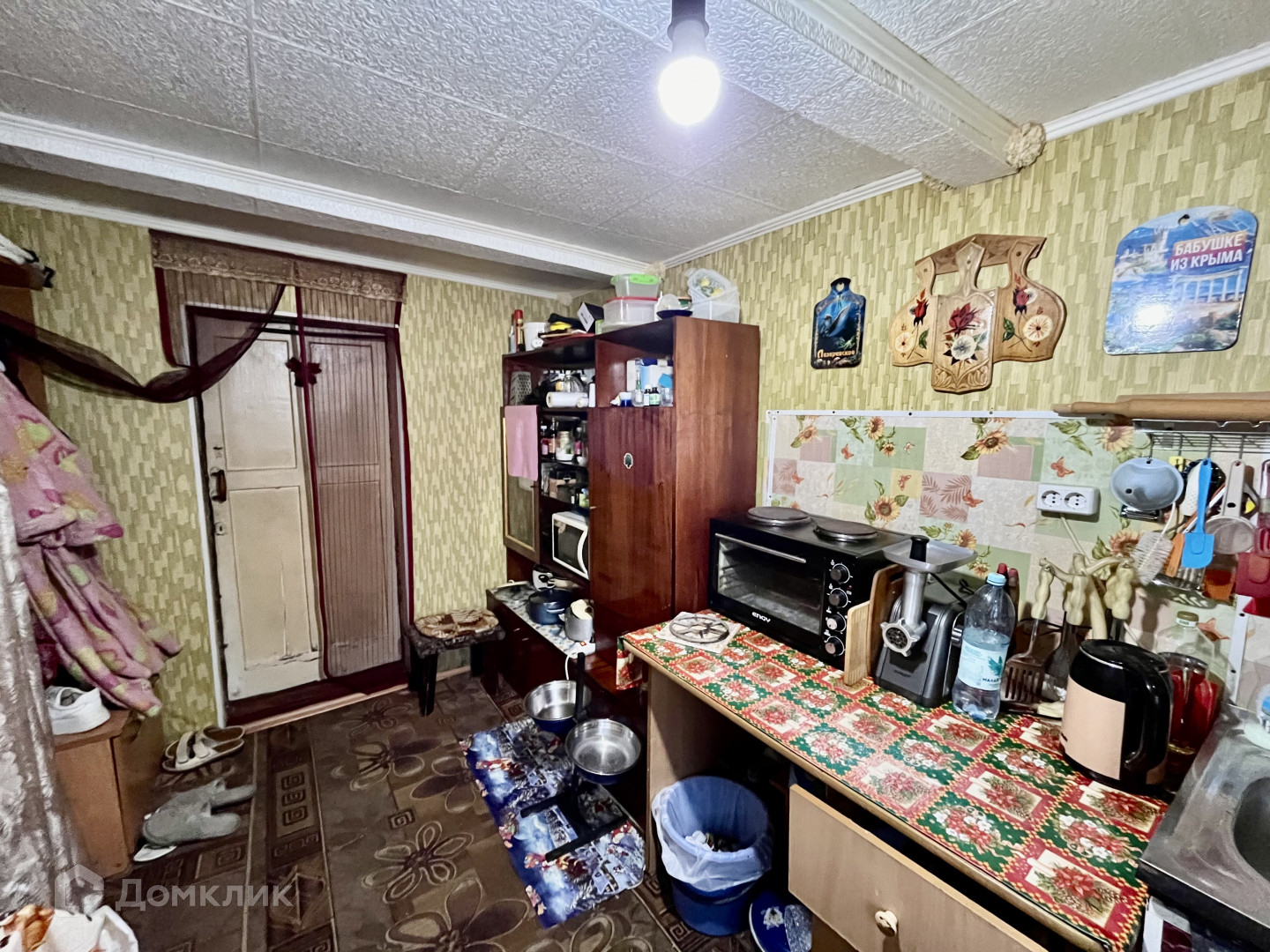 На кухне установлен духовой шкаф с 2 комфорками для готовки.