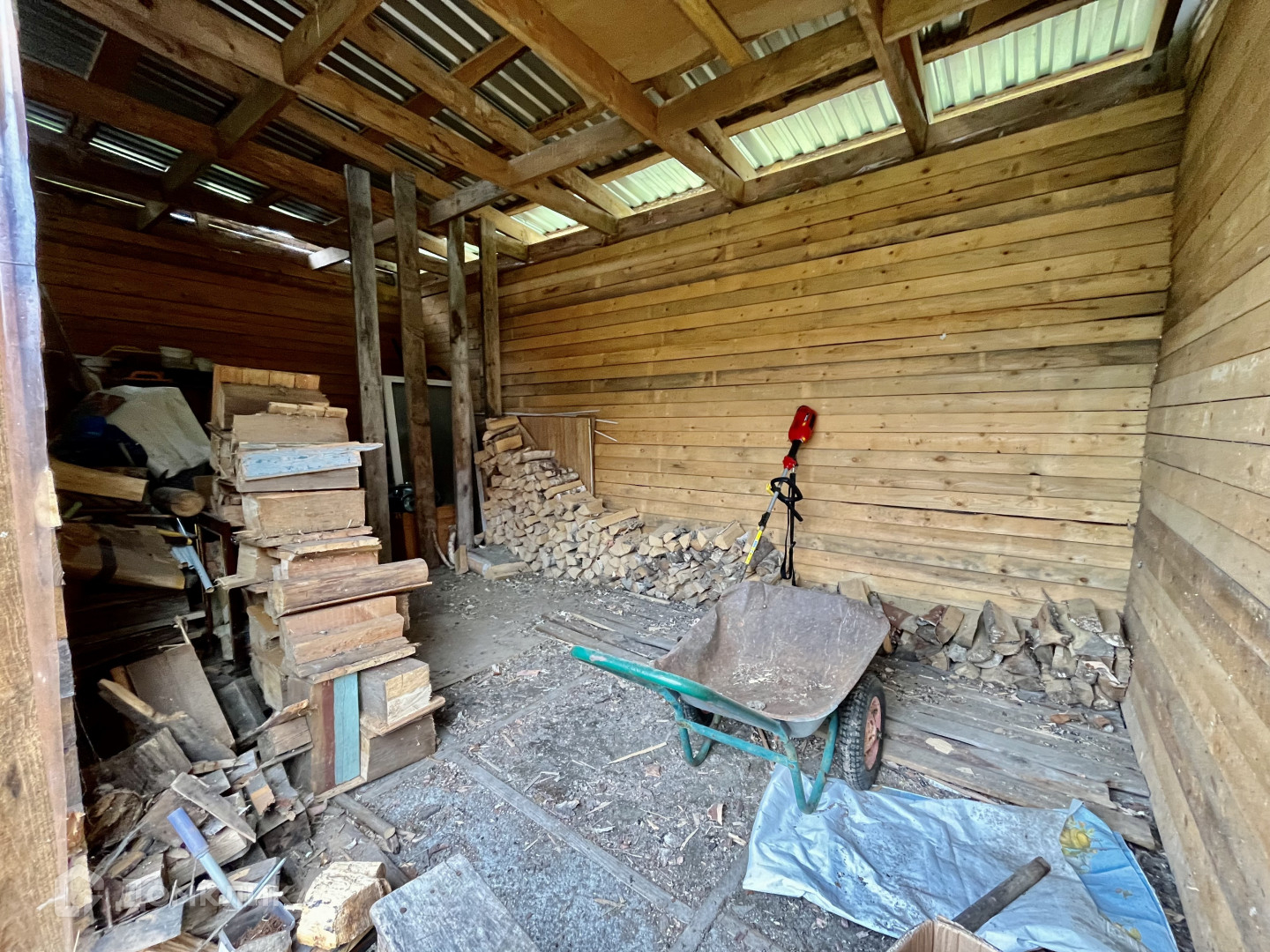 Также на участке расположен новый крытый дровник с рабочим пространством.