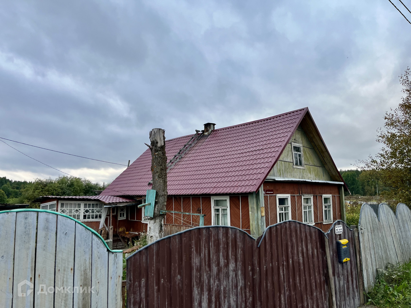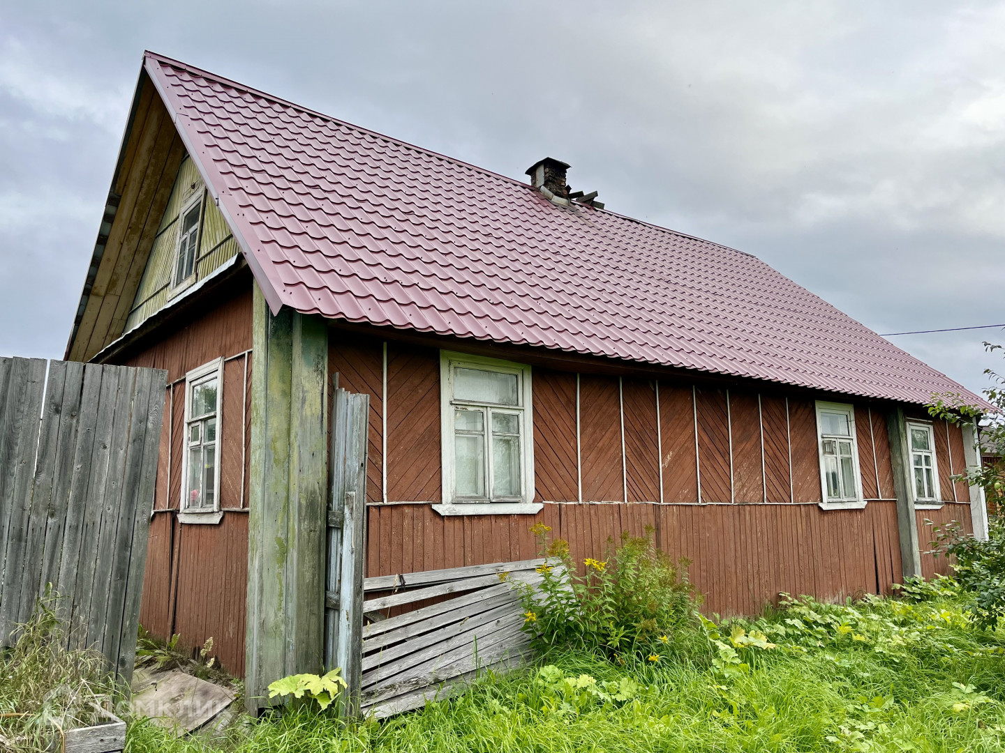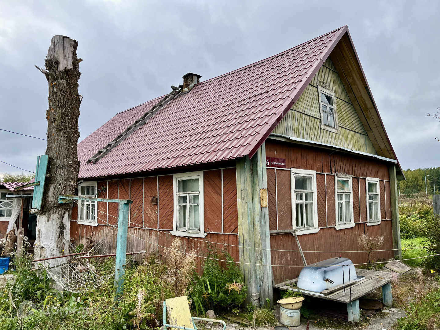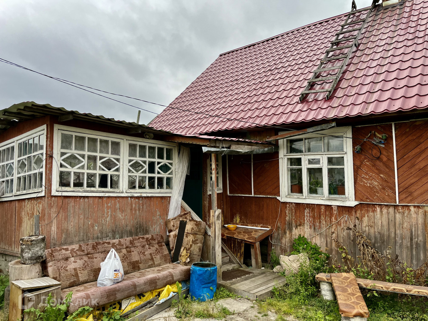 Дом выполнен из круглого бревна, новая крыша - металлочерепица.