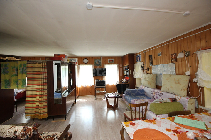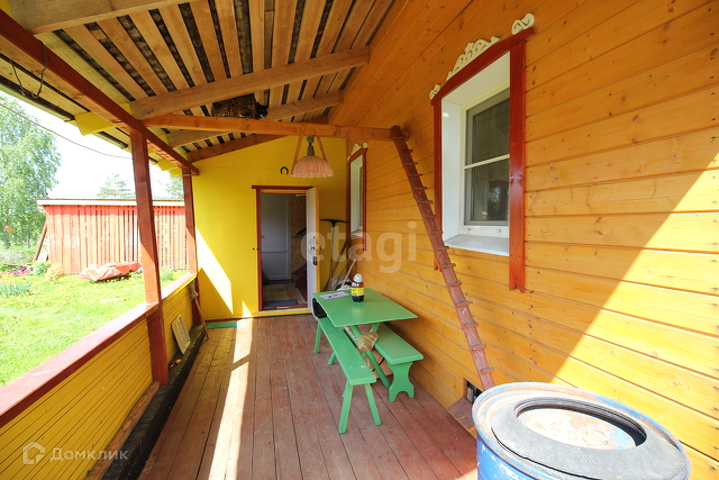 Дом бревенчатый обшит вагонкой, фундамент - тумбы под углами дома и между ними по периметру лента, крыша металлическая. Пристроена веранда. Окна ПВХ, проводка вся новая медная. Отопление печное и дополнительно установлены электроконвекторы, газ баллонный. В доме просторная комната и кухня, летняя комната, большое помещение под гараж и хранение вещей, выход на чердак где возможно дополнительно оборудовать комнаты, на веранде летняя комната.