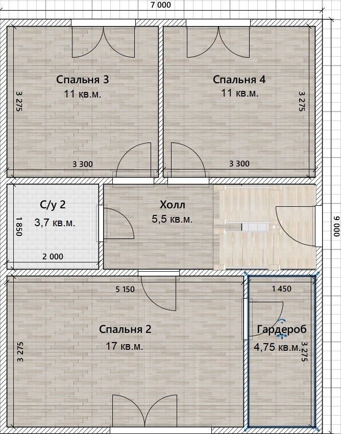 - 3 спальни с гардеробной