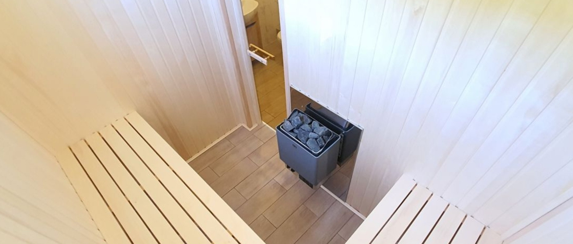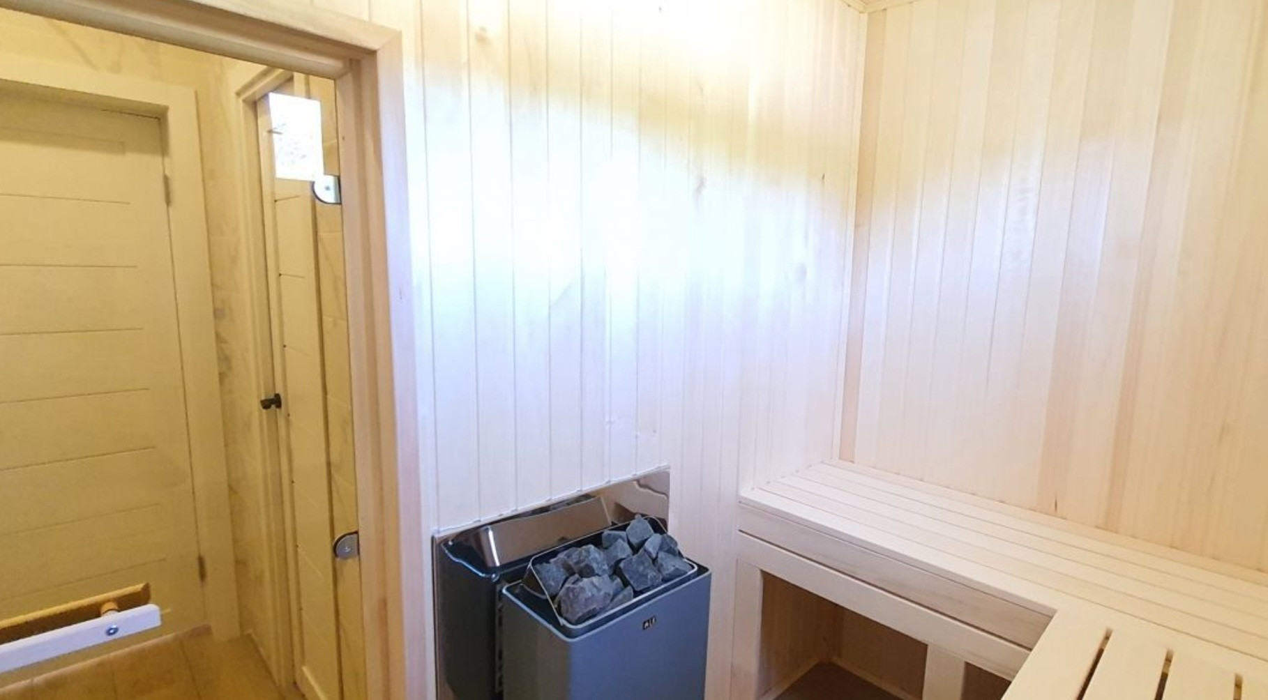 - Сауна (вся отделка - липа, мощная каменка)