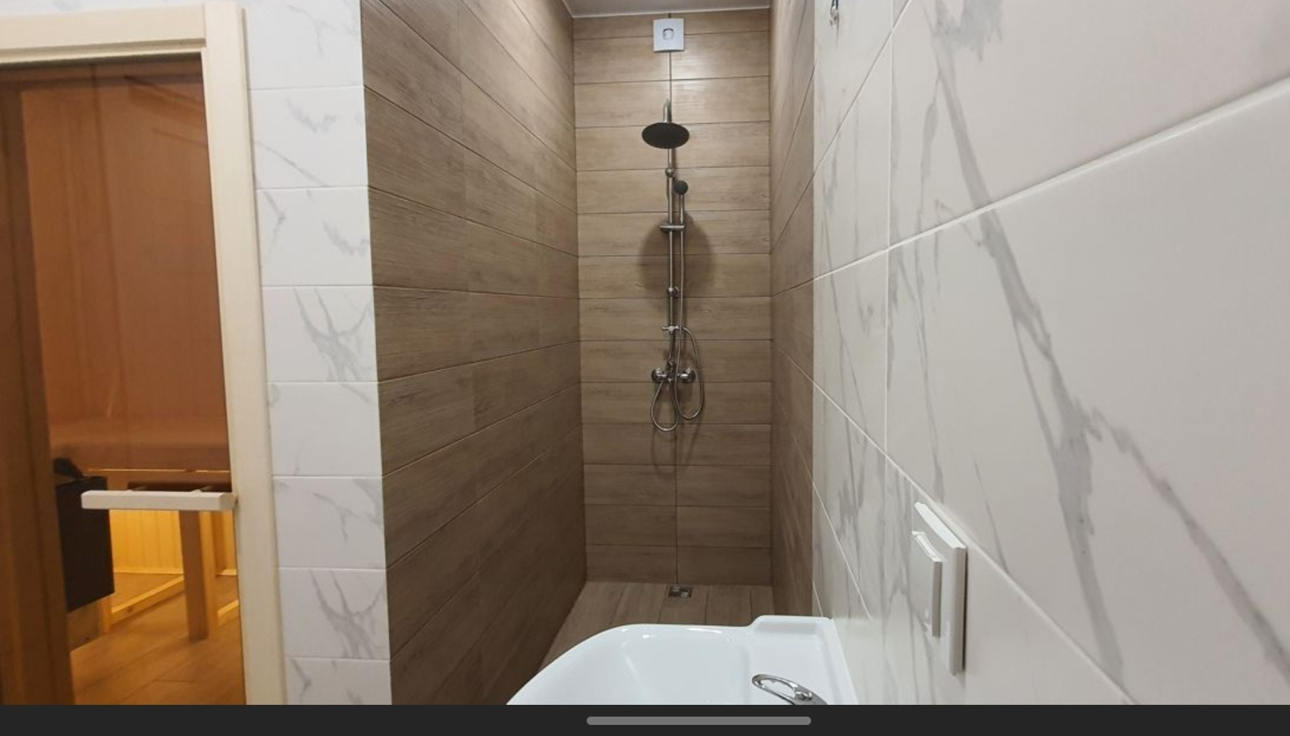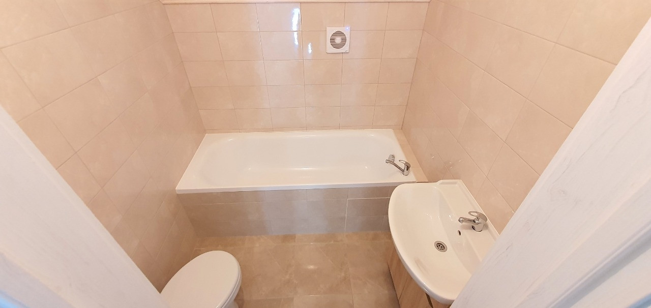 - Санузел с ванной оборудован сантехникой и теплым полом