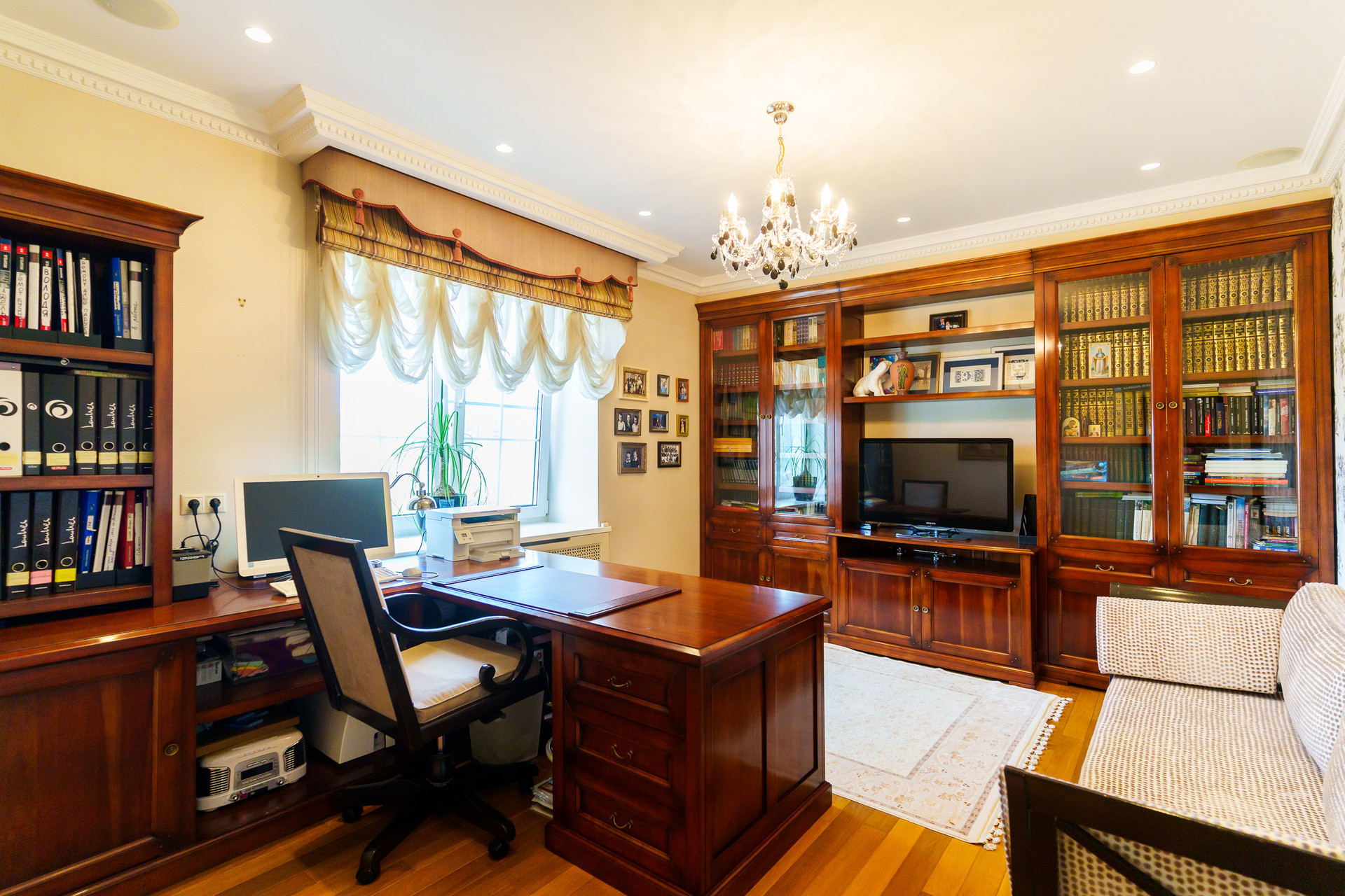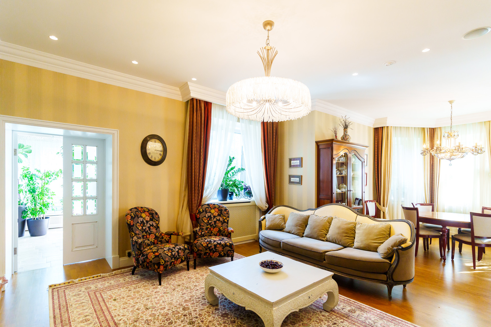 - Мебель: Классическая, полностью из массива дерева, произведена в Португалии с соблюдением высоких стандартов.
