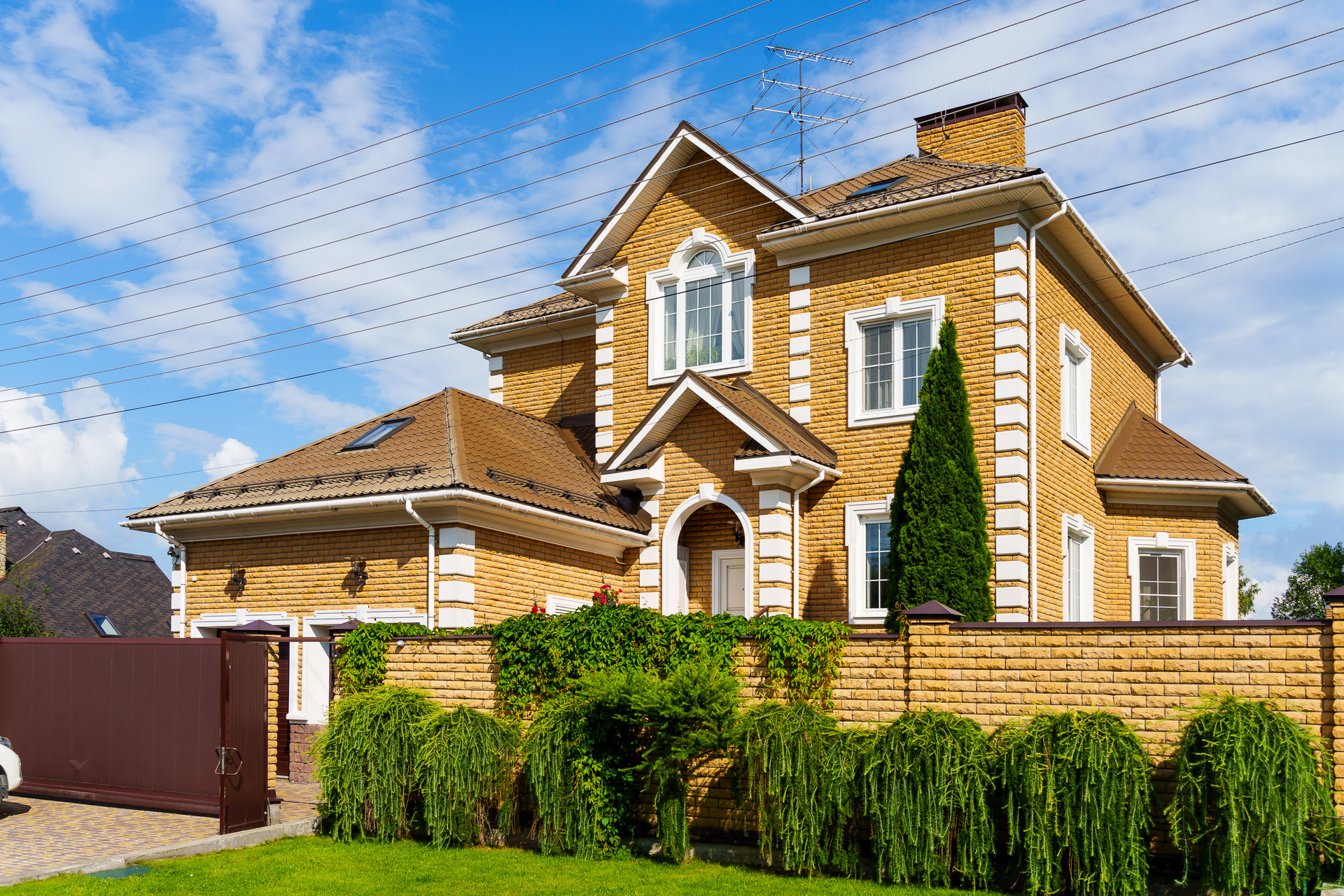 - Ворота: Откатные с электроприводом, калитка с видеодомофоном и электрозамком.