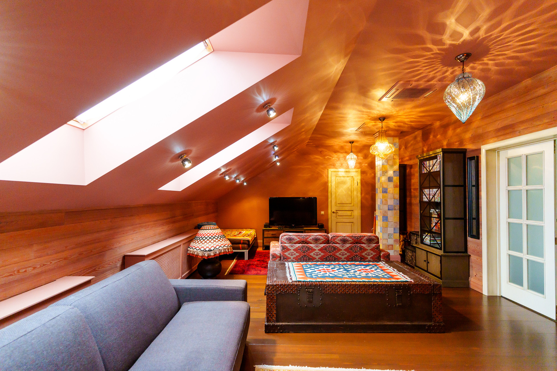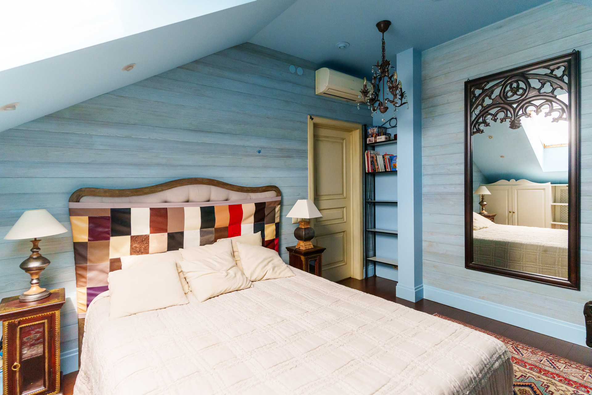 - Детская комната с мансардными окнами.