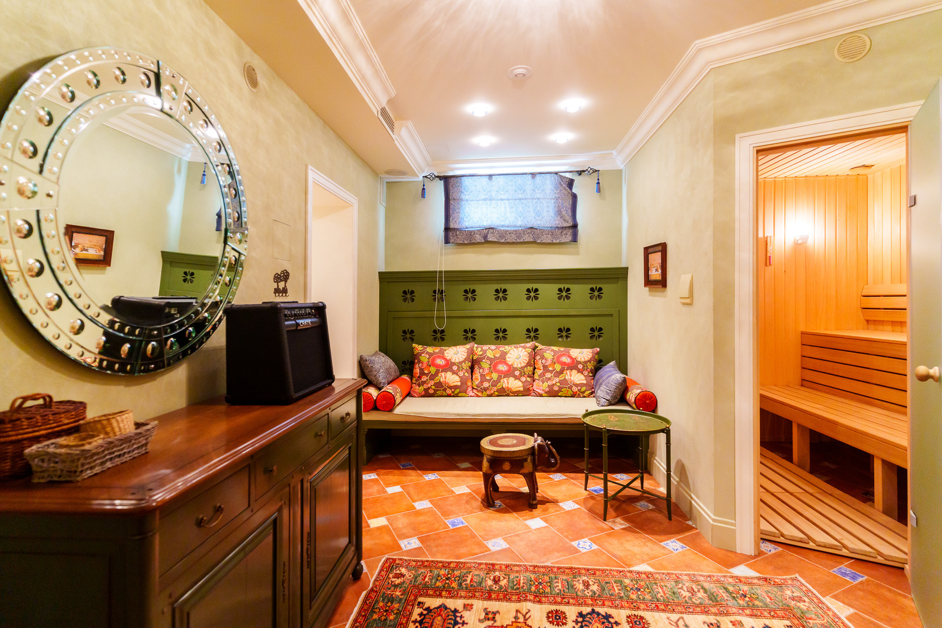 - Сауна с комнатой отдыха и купелью.