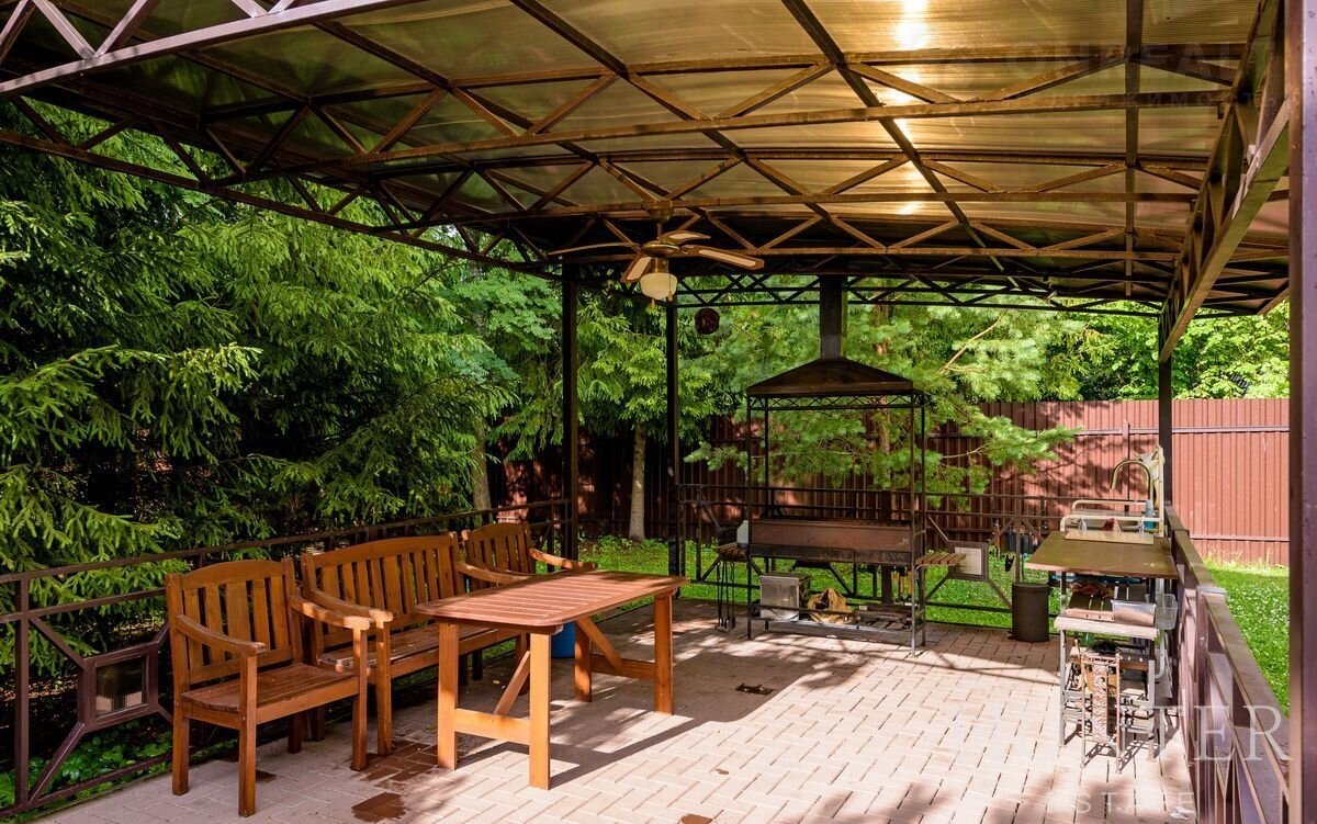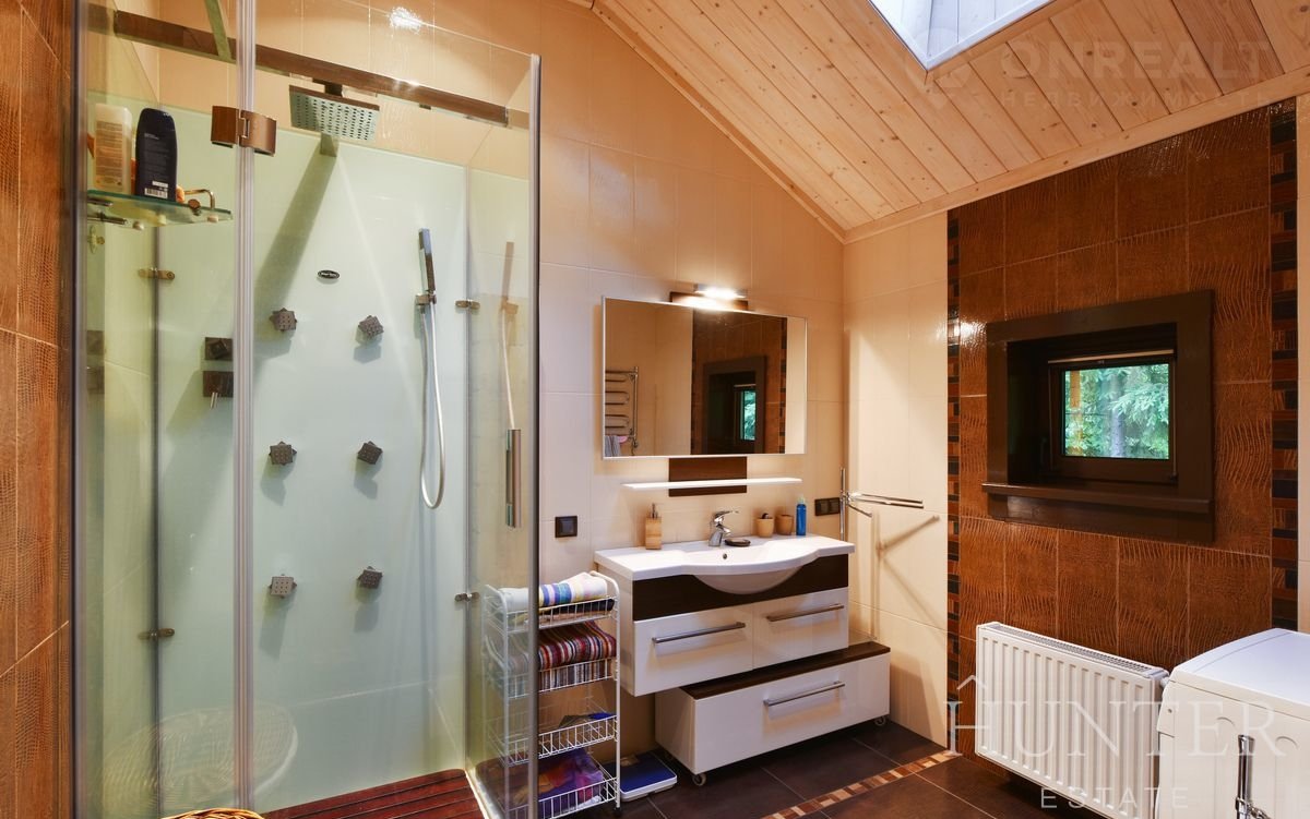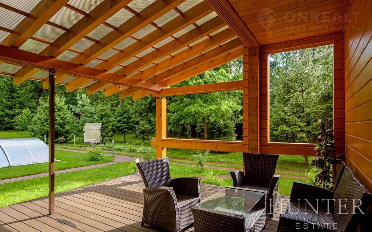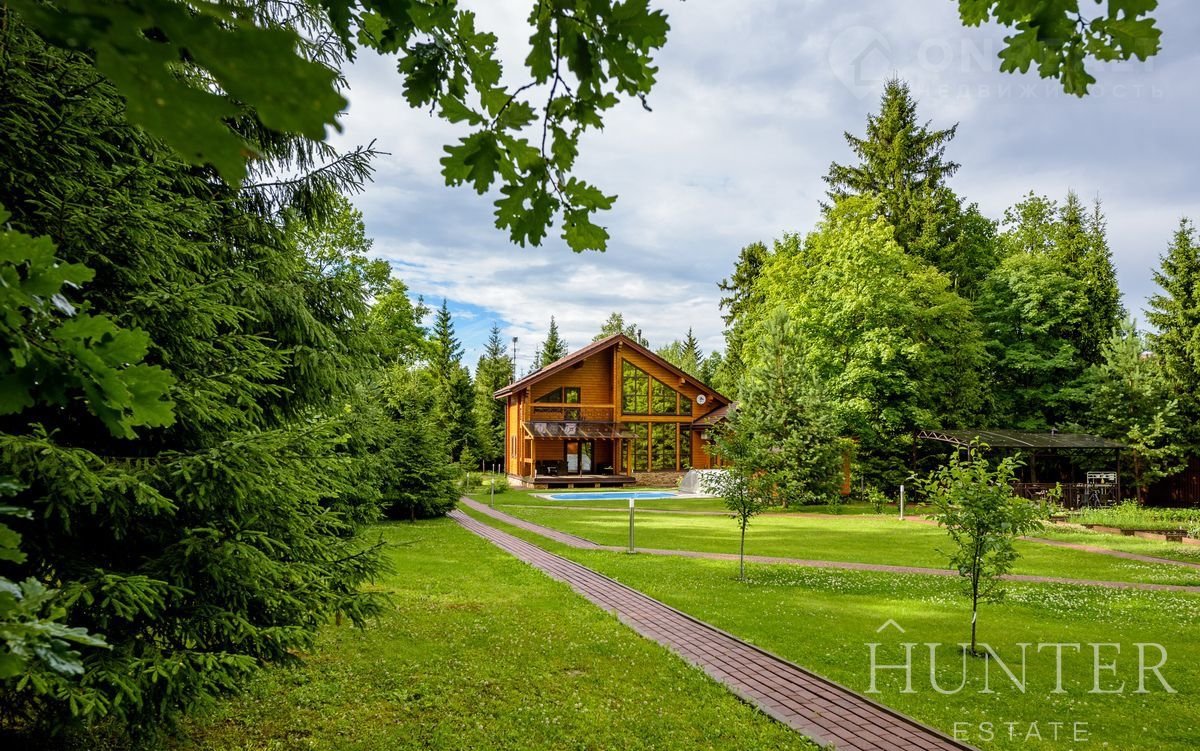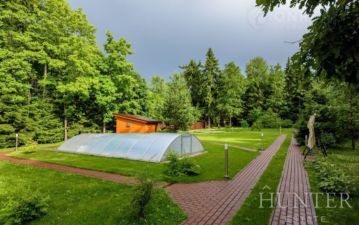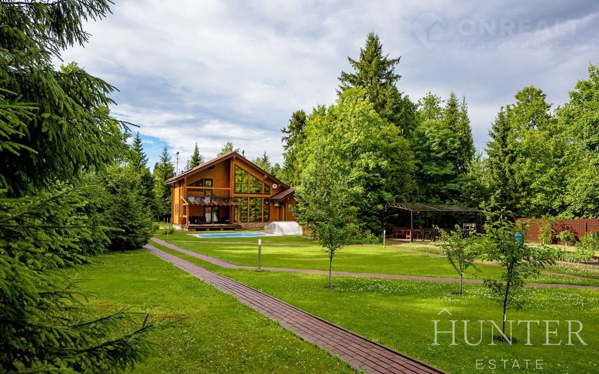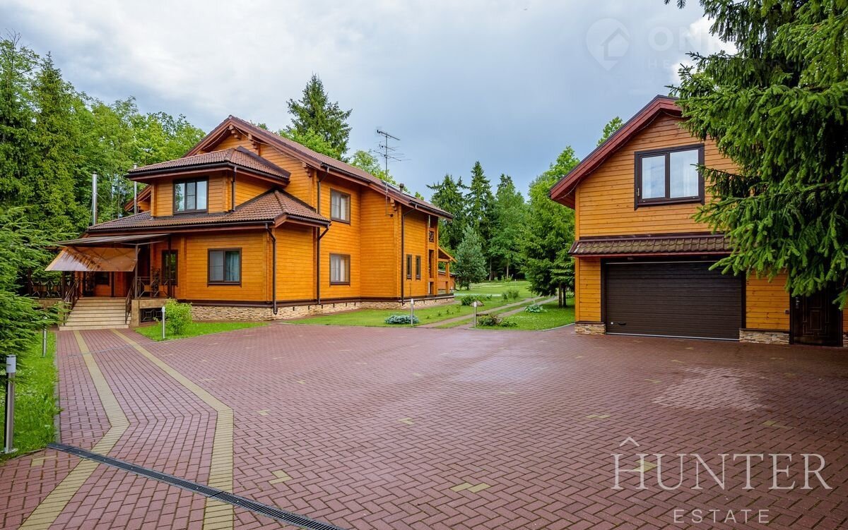 На лесном участке площадью 60 соток кроме основного дома построены: открытый подогреваемый бассейн 3*7 с противотоком и навесом, беседка ВВQ и гараж на 2 м/м с квартирой для персонала.