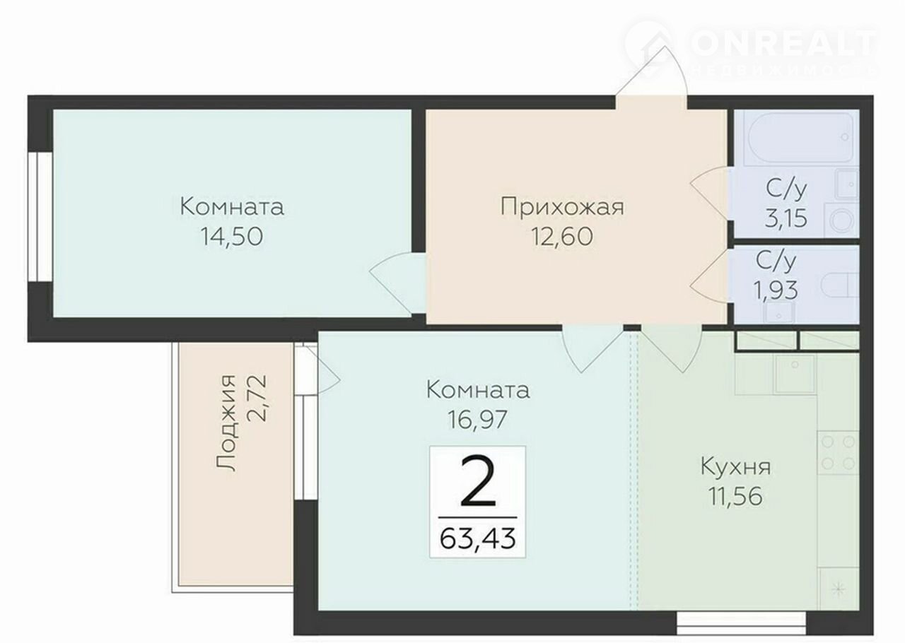 Общая площадь 63.4 м2