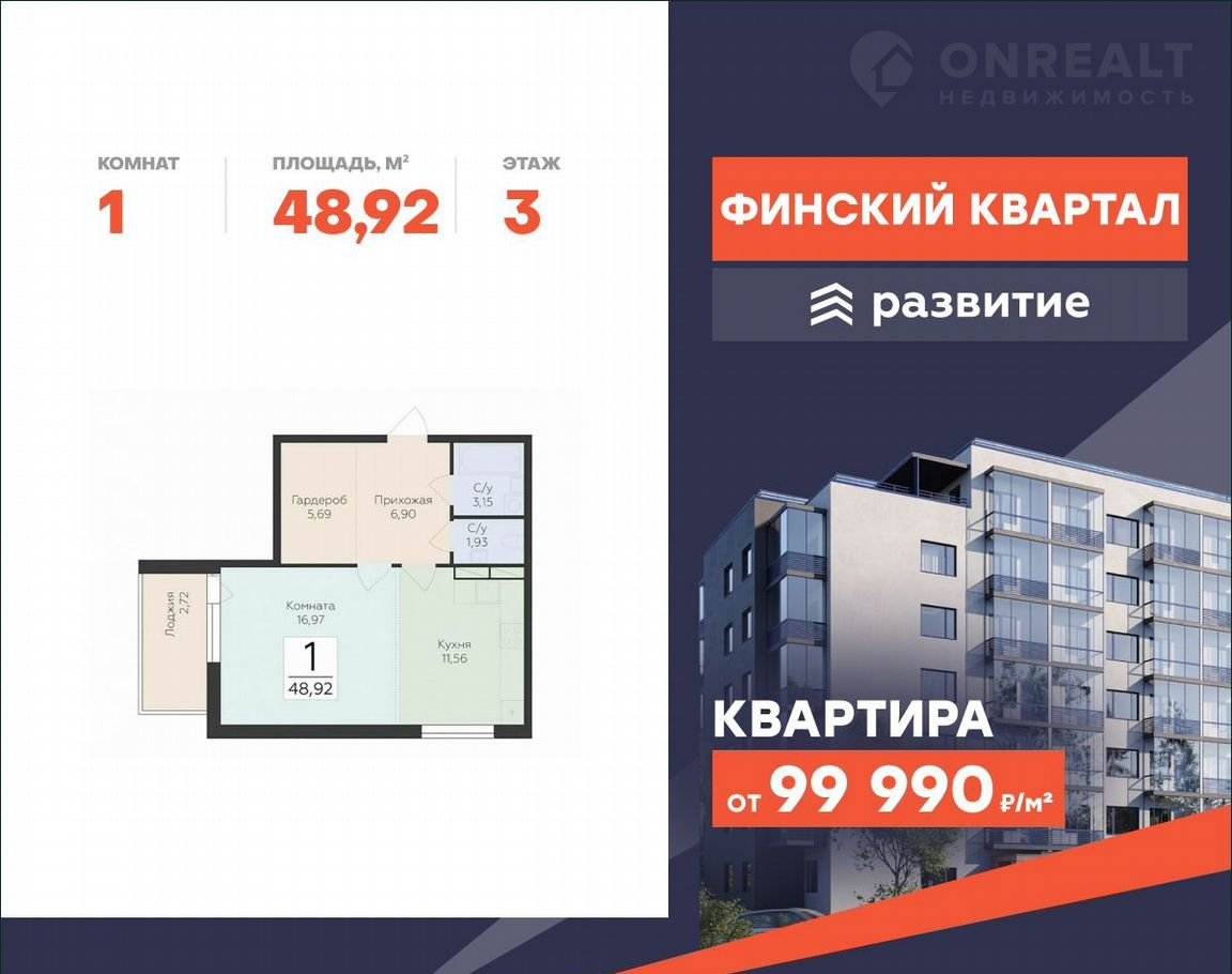 - Kвартиpа от 99 900 ₽/м²;