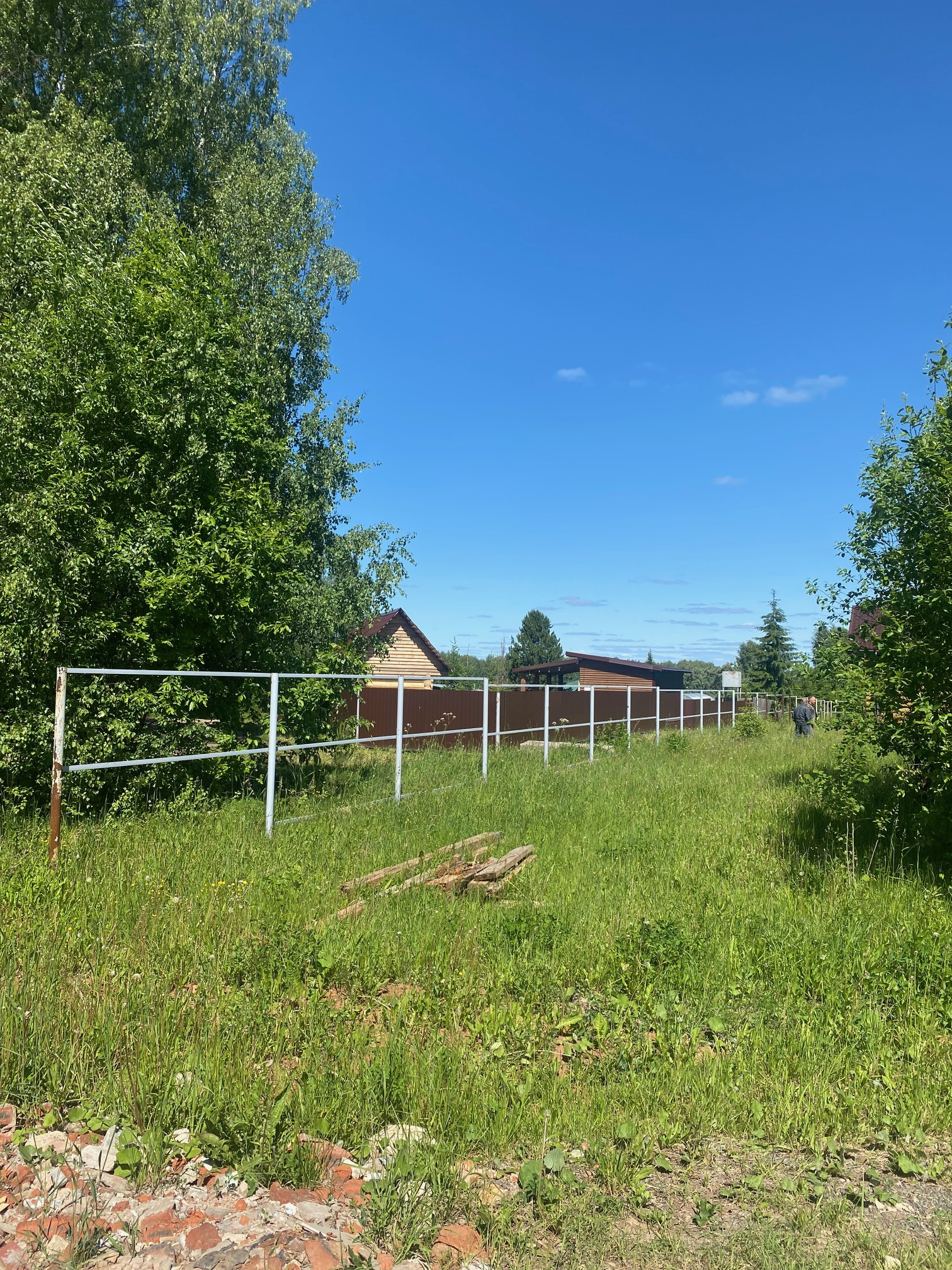 Огорожен забором с трех сторон.