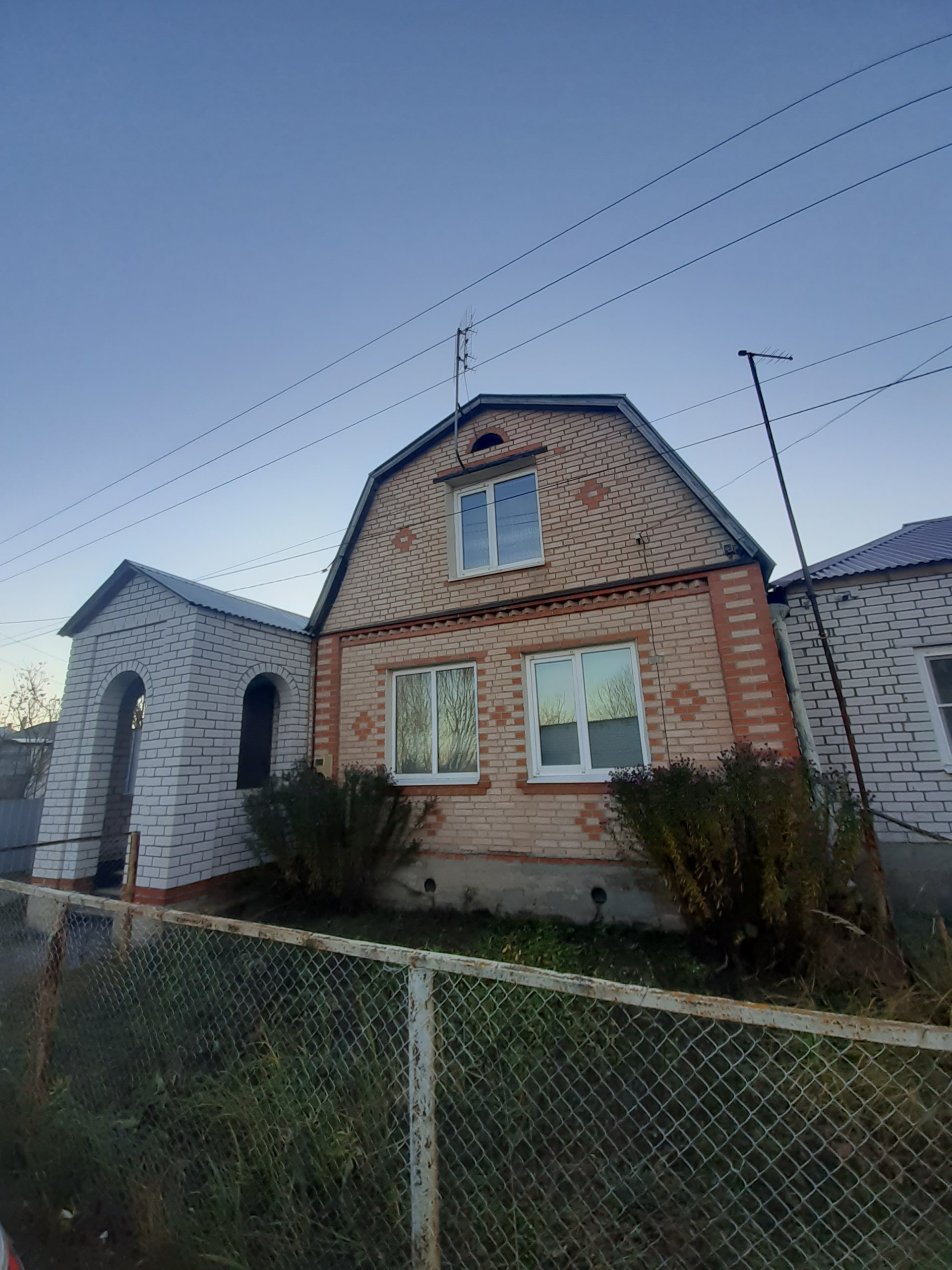 Дом 74.3 м2 , кирпичный, высота потолков 2,6 м. АОГВ , вода - центральная, нагрев воды от водонагревательного бачка , канализация центральная. На полу второго этажа дерево, на первом этаже линолеум, счетчики на газ и свет в доме. При входе в дом терасса. Санузел совмещен.