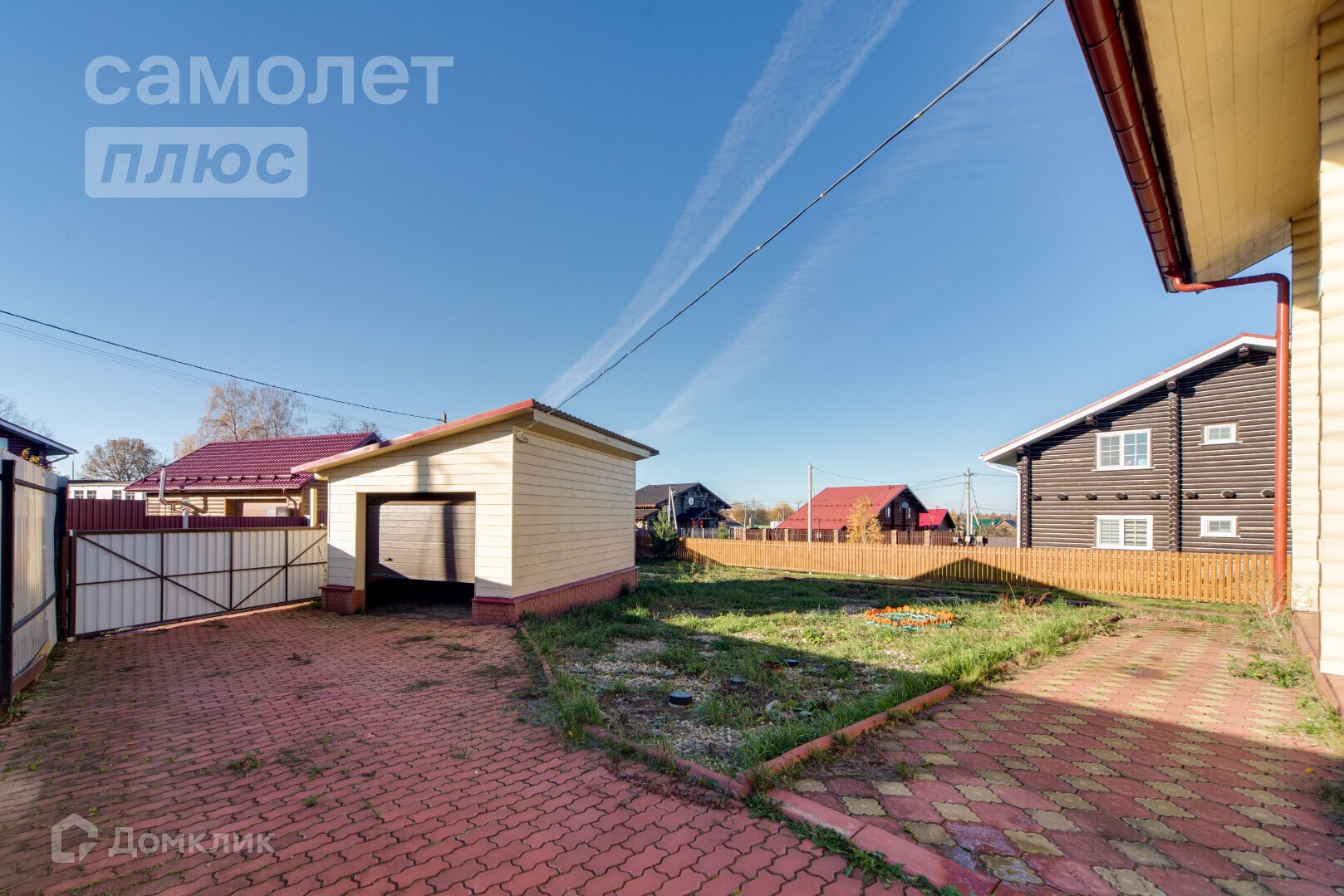 Дом огорожен забором. Въезд на участок и гараж на территории с автоматическими воротами.