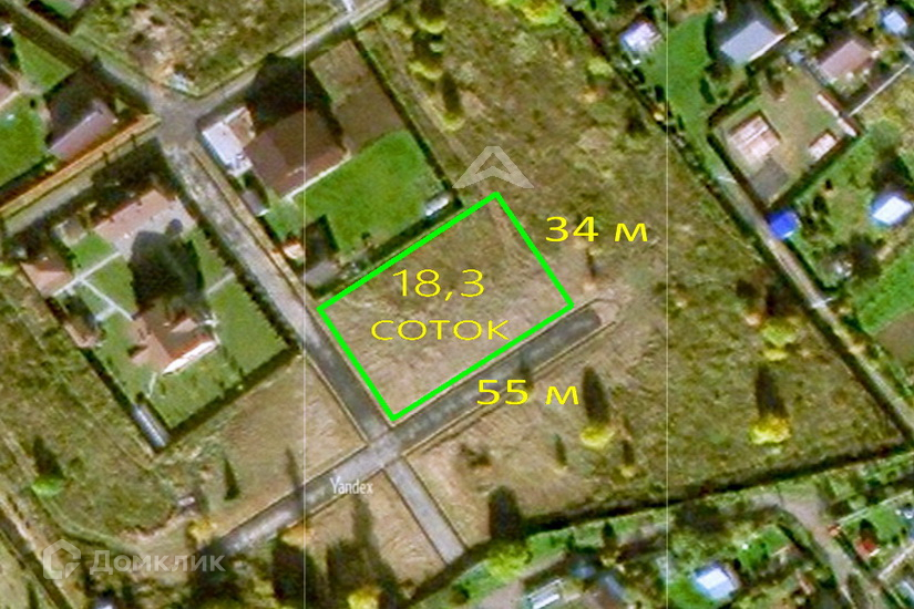 УЧАСТОК площадью 18,30 соток, ровный, прямоугольной формы, размер сторон 55 х 34 м.