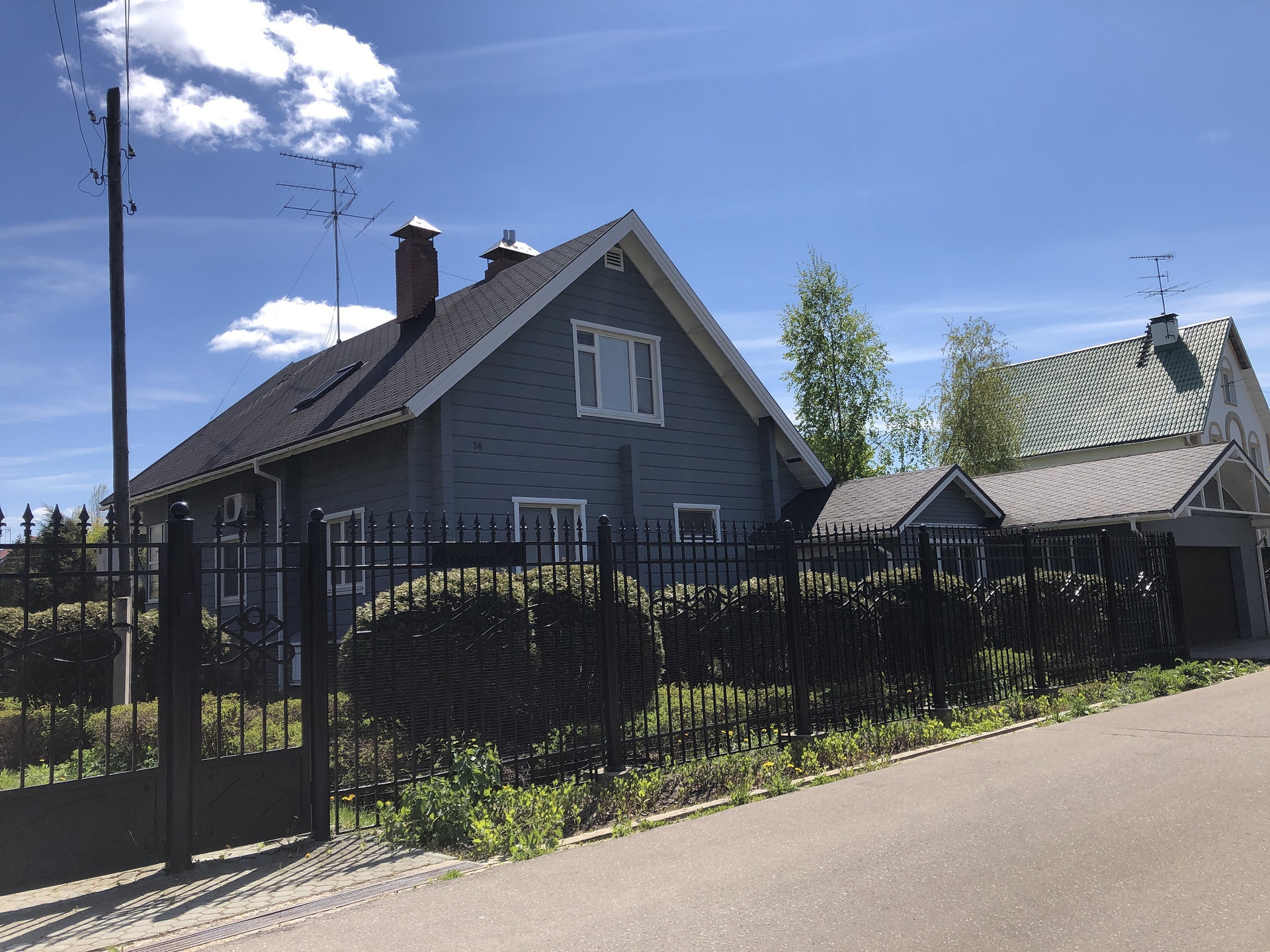 На участке расположен отдельный дом с гаражом на 2а/м , бильярдной и квартирой для персонала, площадью 100 кв м, а также домик для отдыха с барбекю. Большая парковочная территория.