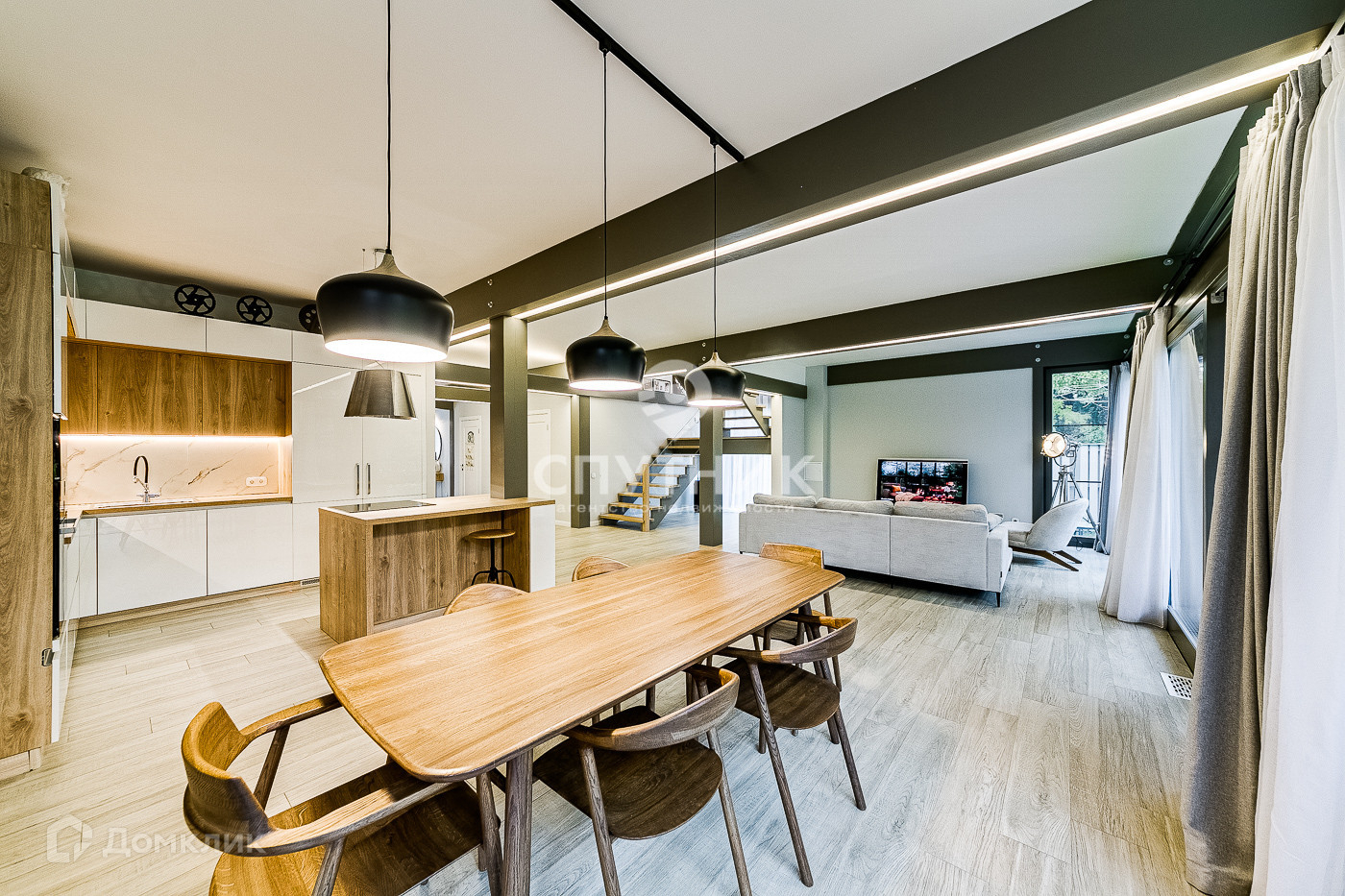 ⁃Кухня с островом и встроенной техникой BOSCH премиум класса.