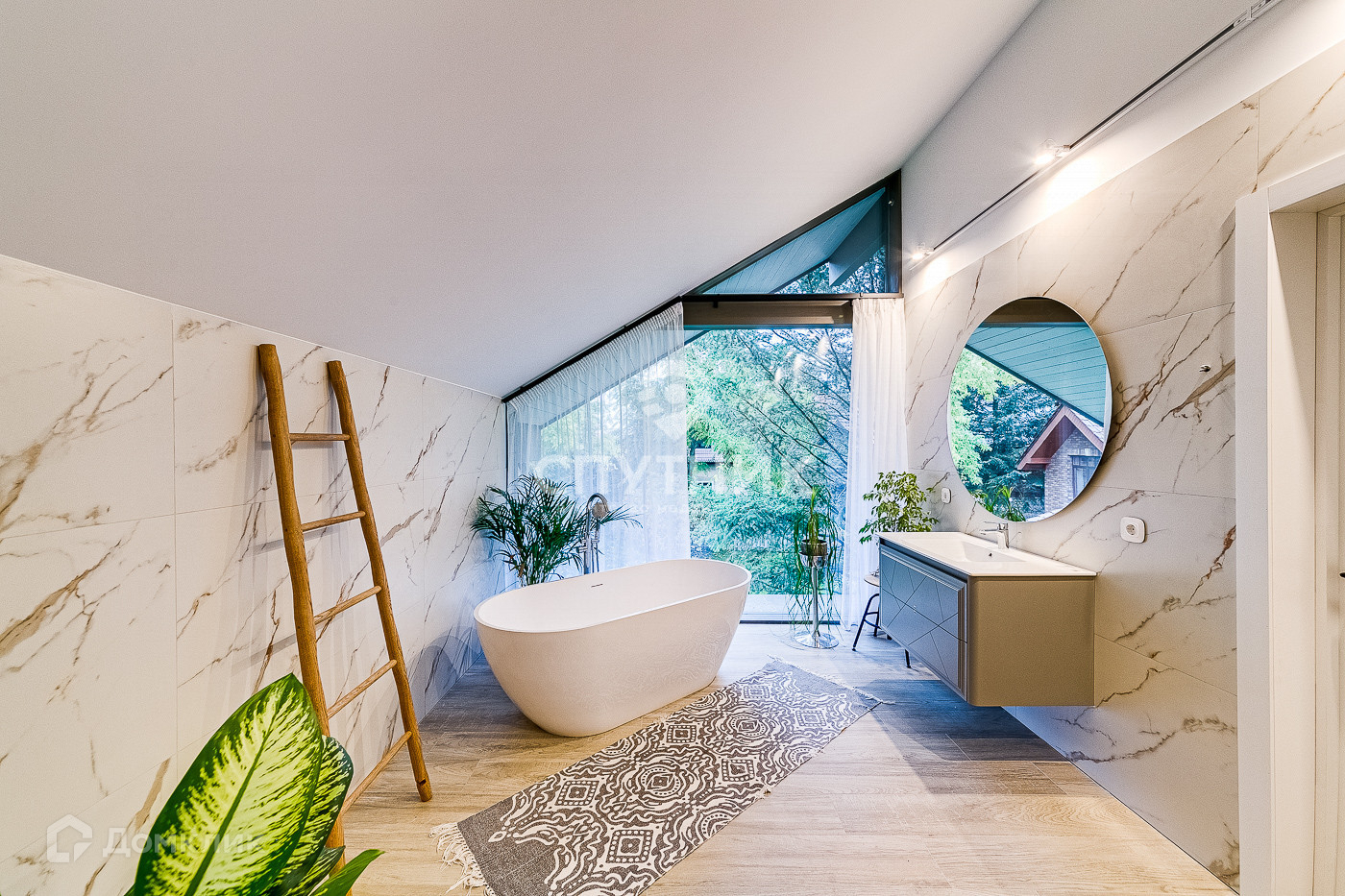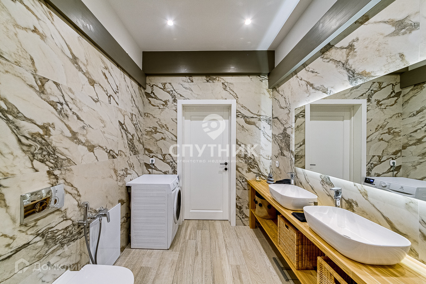⁃мастер-спальня 27м2 включающая в себя персональный санузел более 12м2 с отдельностоящей ванной из литьевого мрамора, гардеробную комнату, личную гостиную с выходом на собственный балкон 12,5 м2