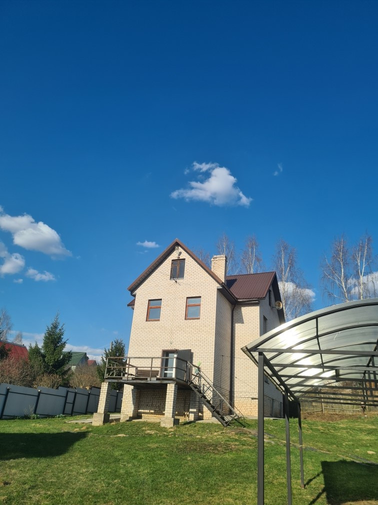 Дом большой 2012 года постройки, сделан ремонт, удобная планировка: на первом этаже расположены кухня 18 кв.м., гостиная, жилая комната, санузел; на втором этаже – 4 комнаты и санузел; третий этаж под крышей – свободной планировки, также под всем домом есть цокольный этаж, где расположены подсобные хозяйственные помещения.