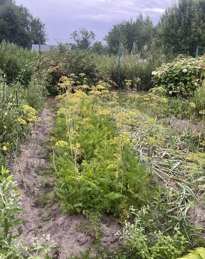 Участок прямоугольной формы, ровный, ухоженный. Имеются посадки смородины, малины, облепихи, тернослив, грядки.