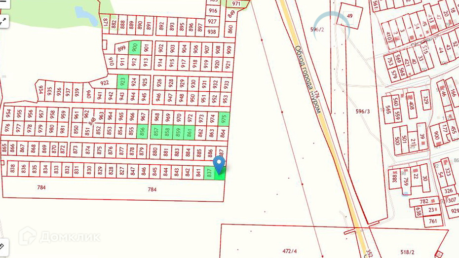 Есть варианты участков с различной площадью (от 9,5 соток) и удаленностью от проезжей части.