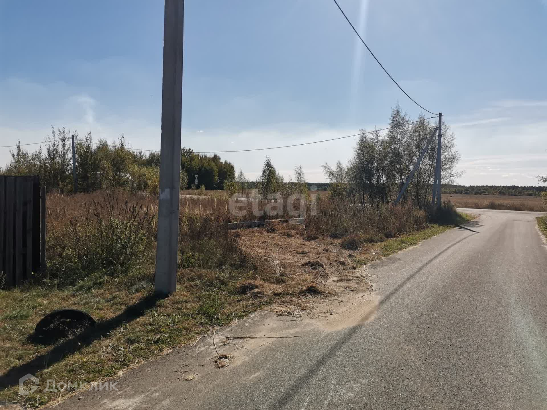 Участок ровный, прямоугольной формы, с одной стороны есть забор из металлопрофиля, с другой стороны примыкает дорога.