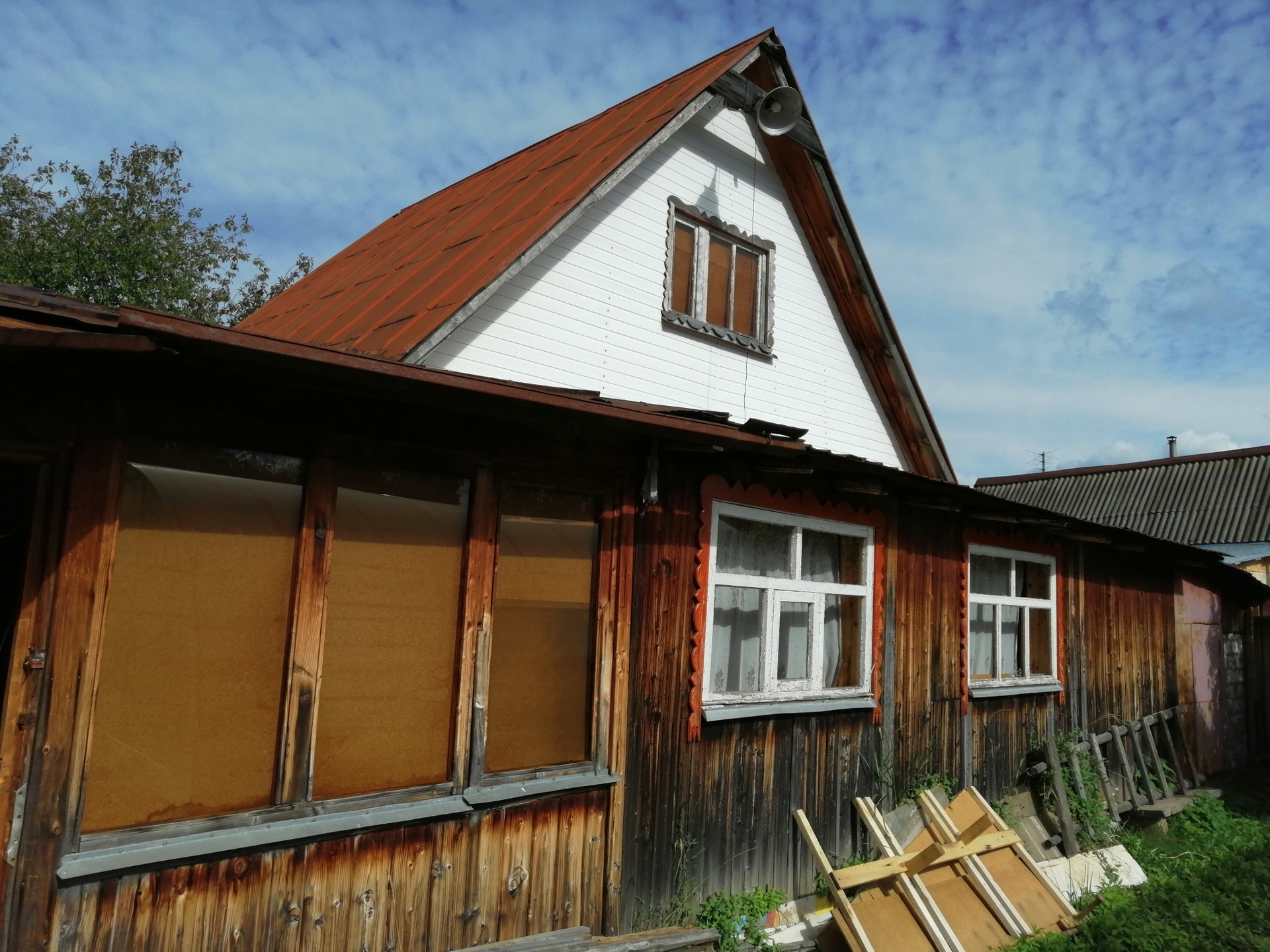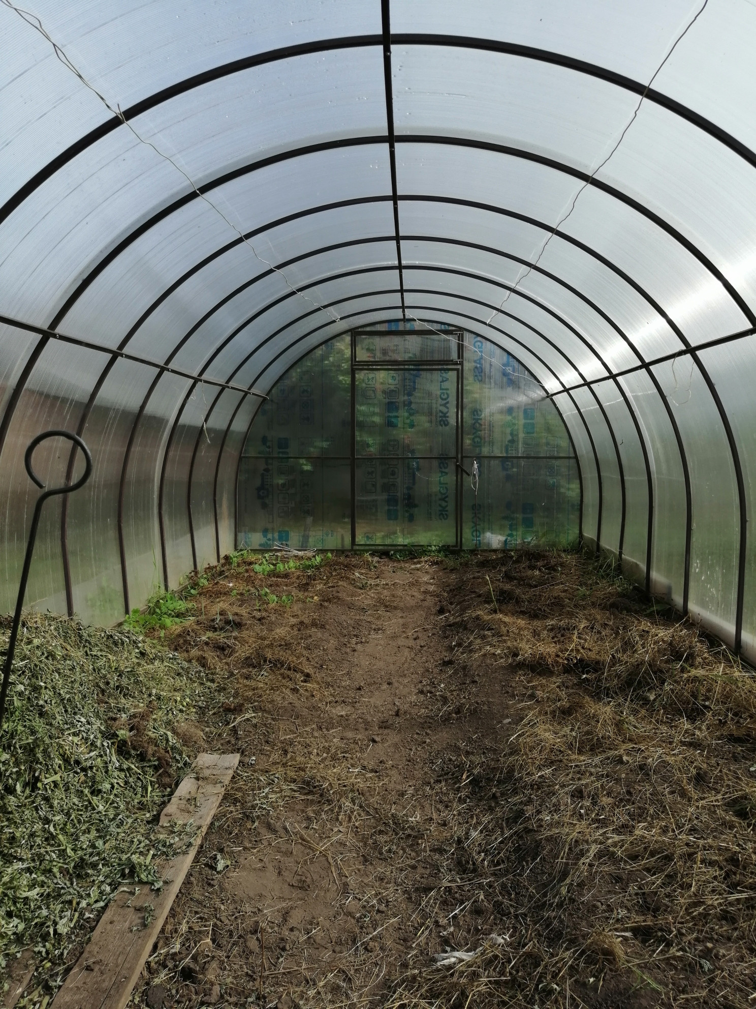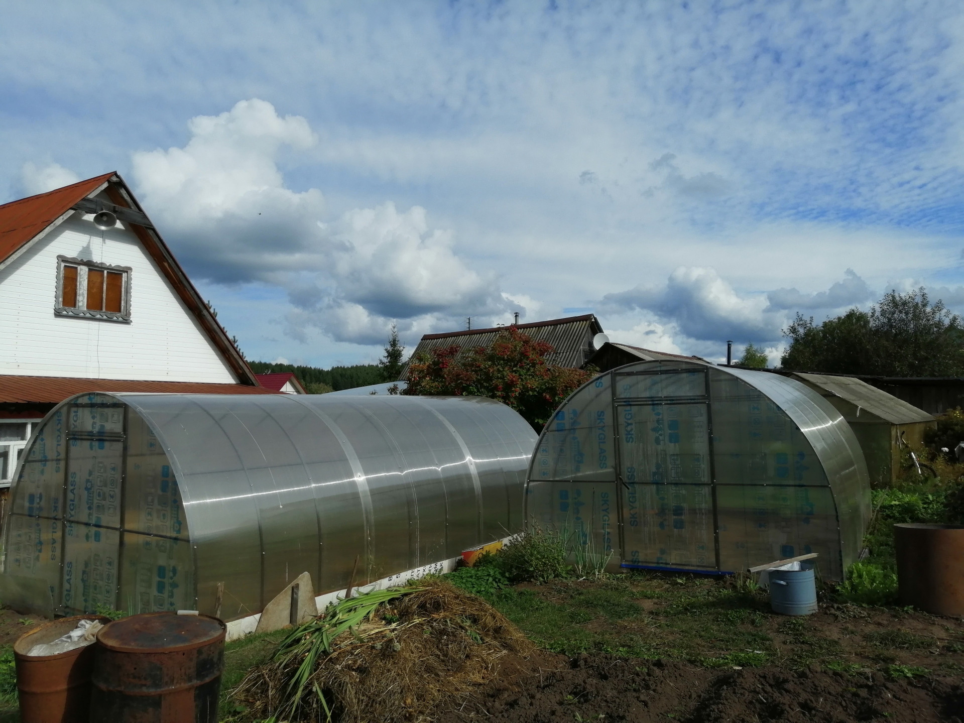 На участке 2 теплицы из поликарбоната, одна из стекла.