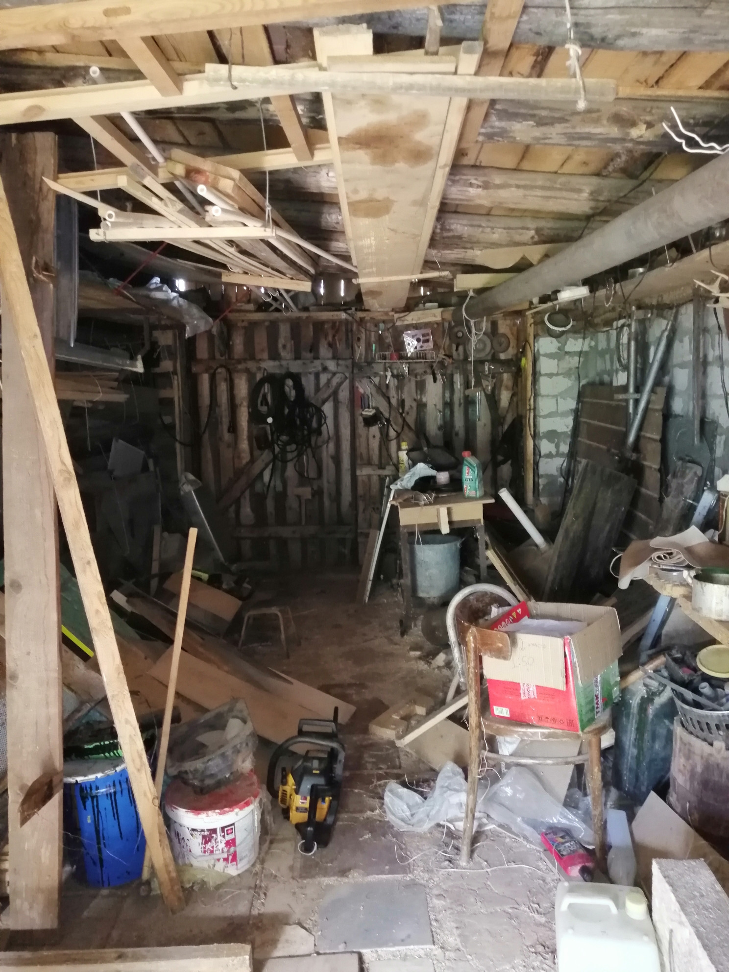 Гараж с большим количеством различного инструмента.