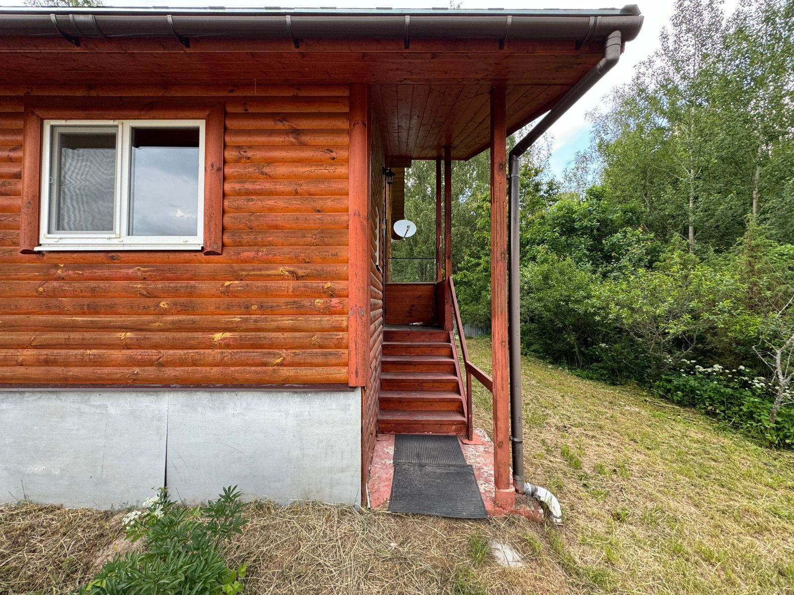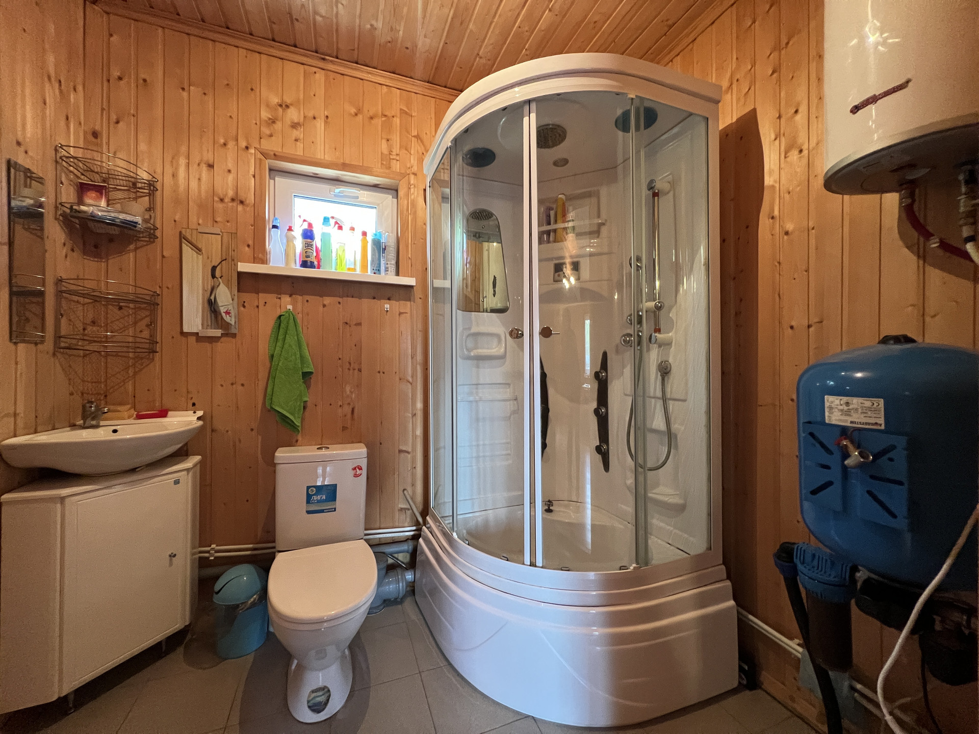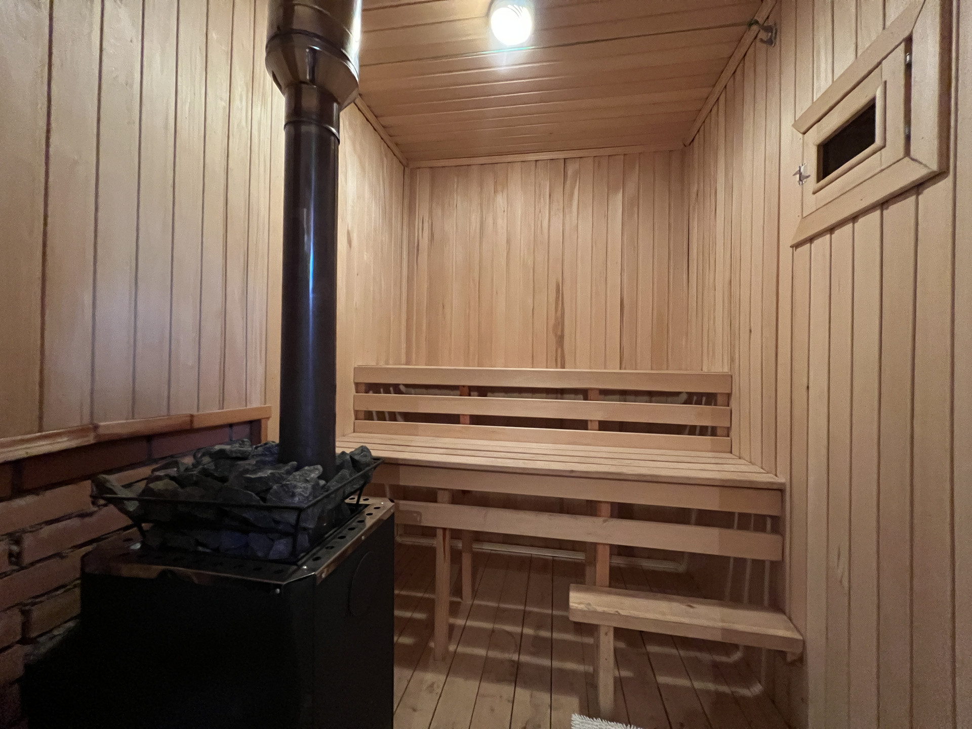 Крыльцо, закрытая летняя терраса, кухня, гостиная-столовая, сауна, санузел с сантехникой (душевая, раковина, туалет, бойлер 80л), большая комната на втором этаже.