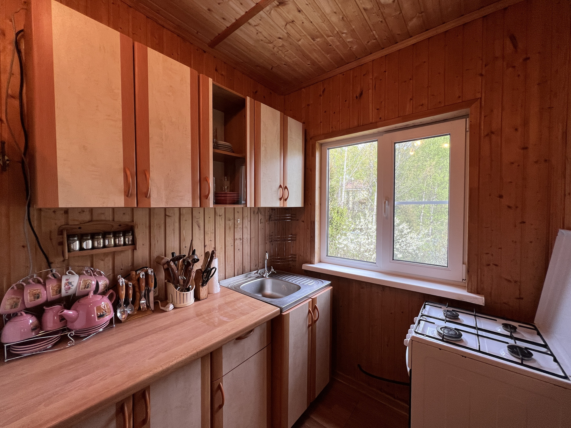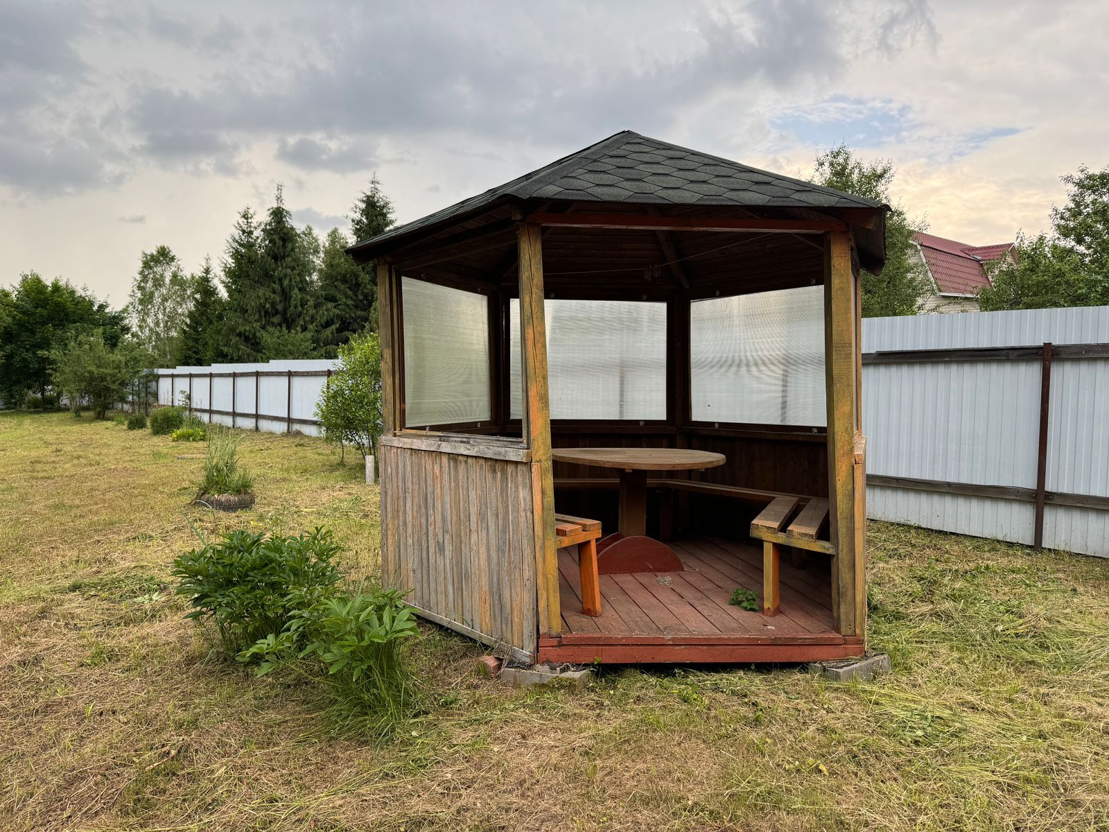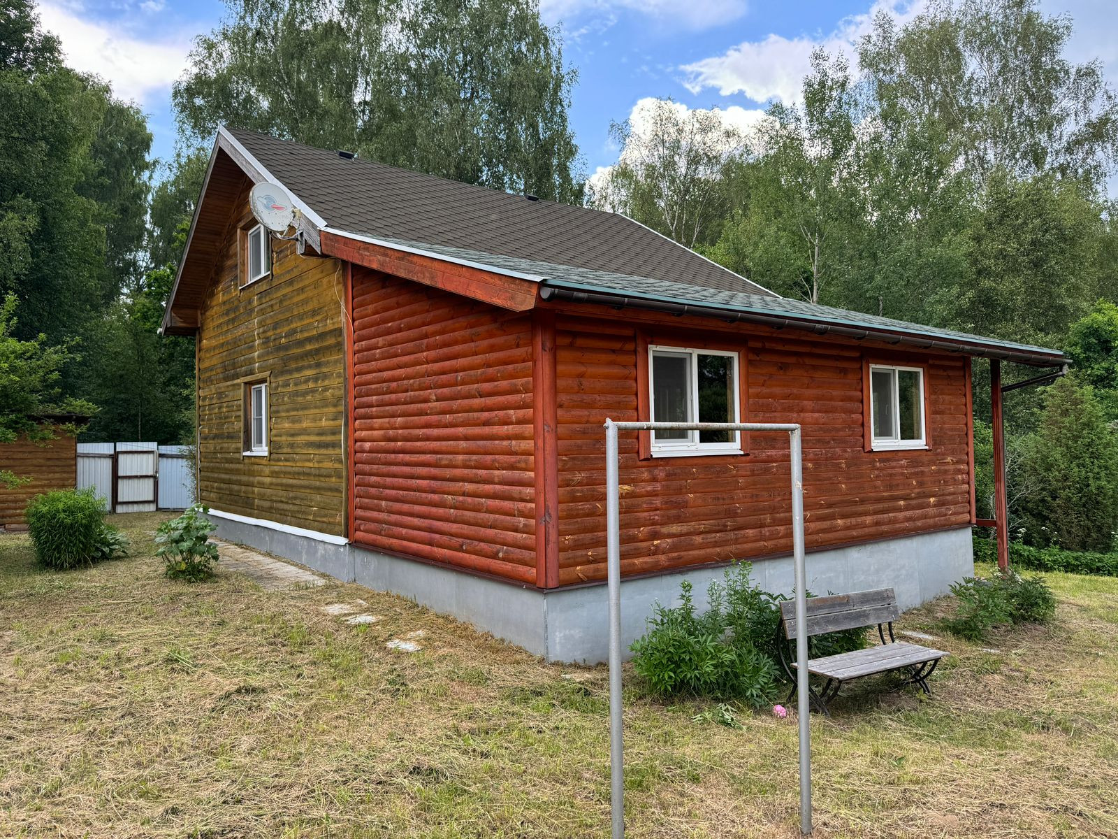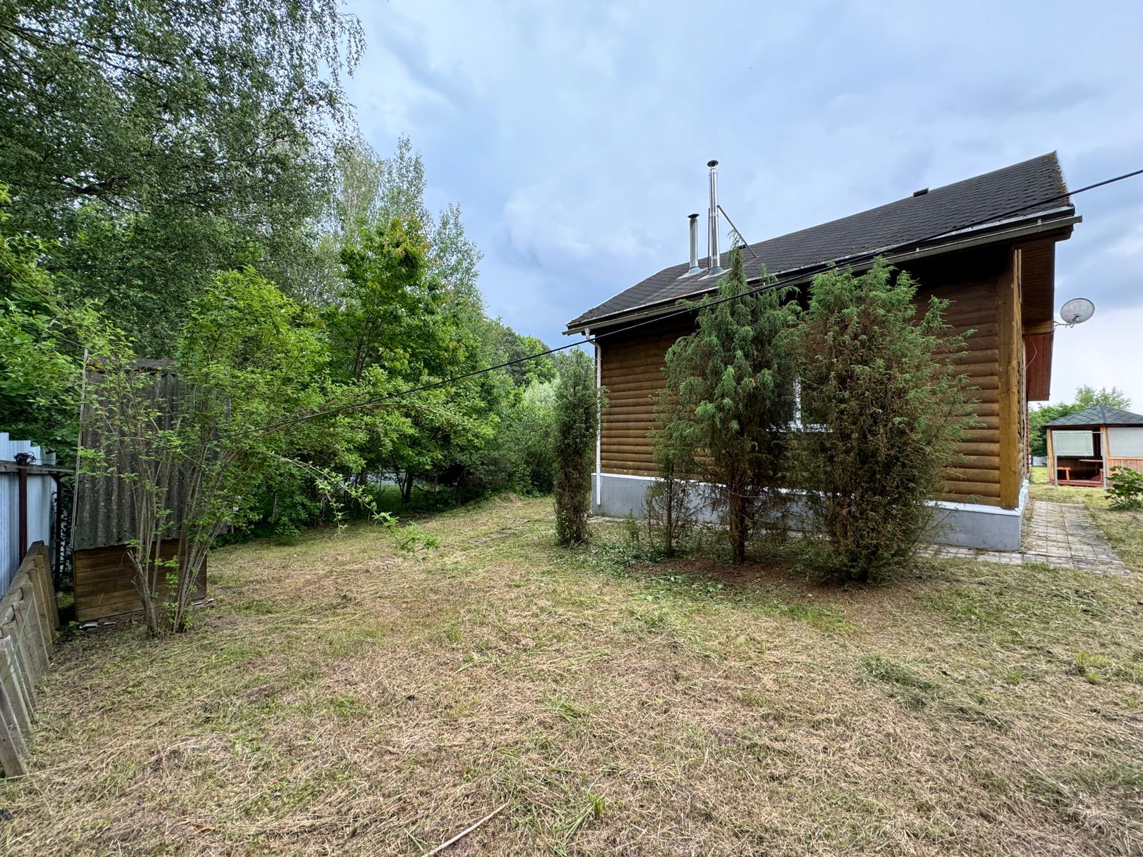 На участке много деревьев: березы, сосны, туи, шиповник, жасмин. Сад: яблони, слива, смородина, облепиха, вишня.